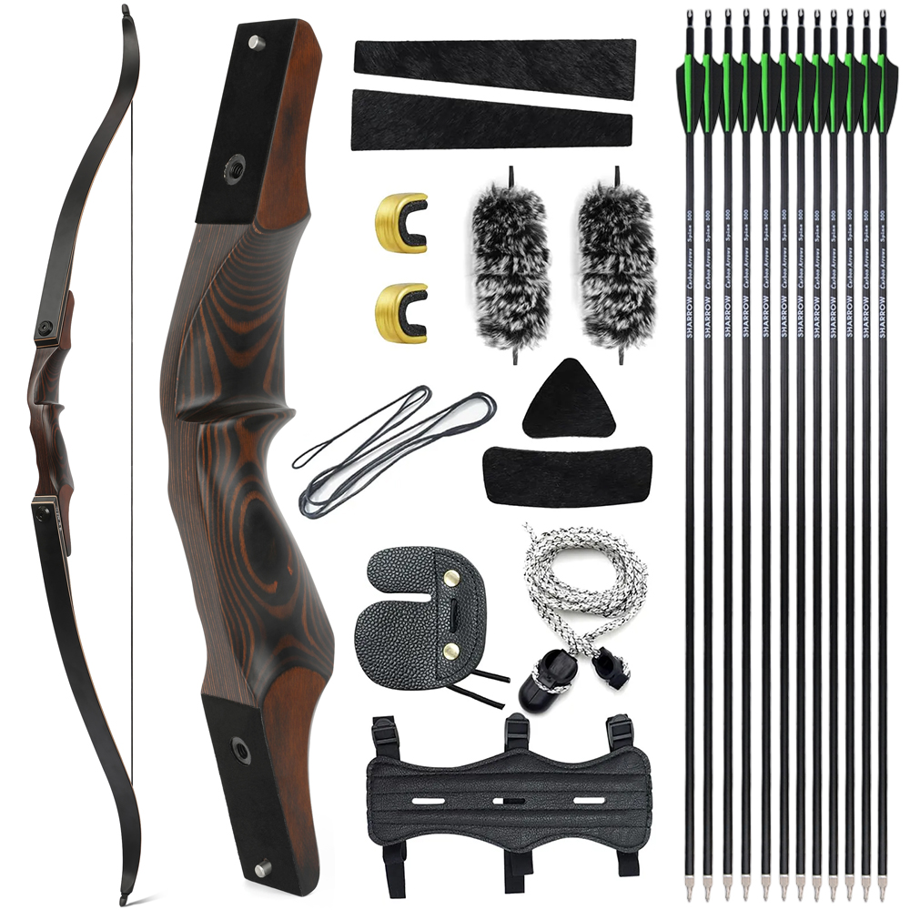 Black Hunter Rebirth 60" Recurve Bow Wooden Takedown Bow Package 25-60 lbs