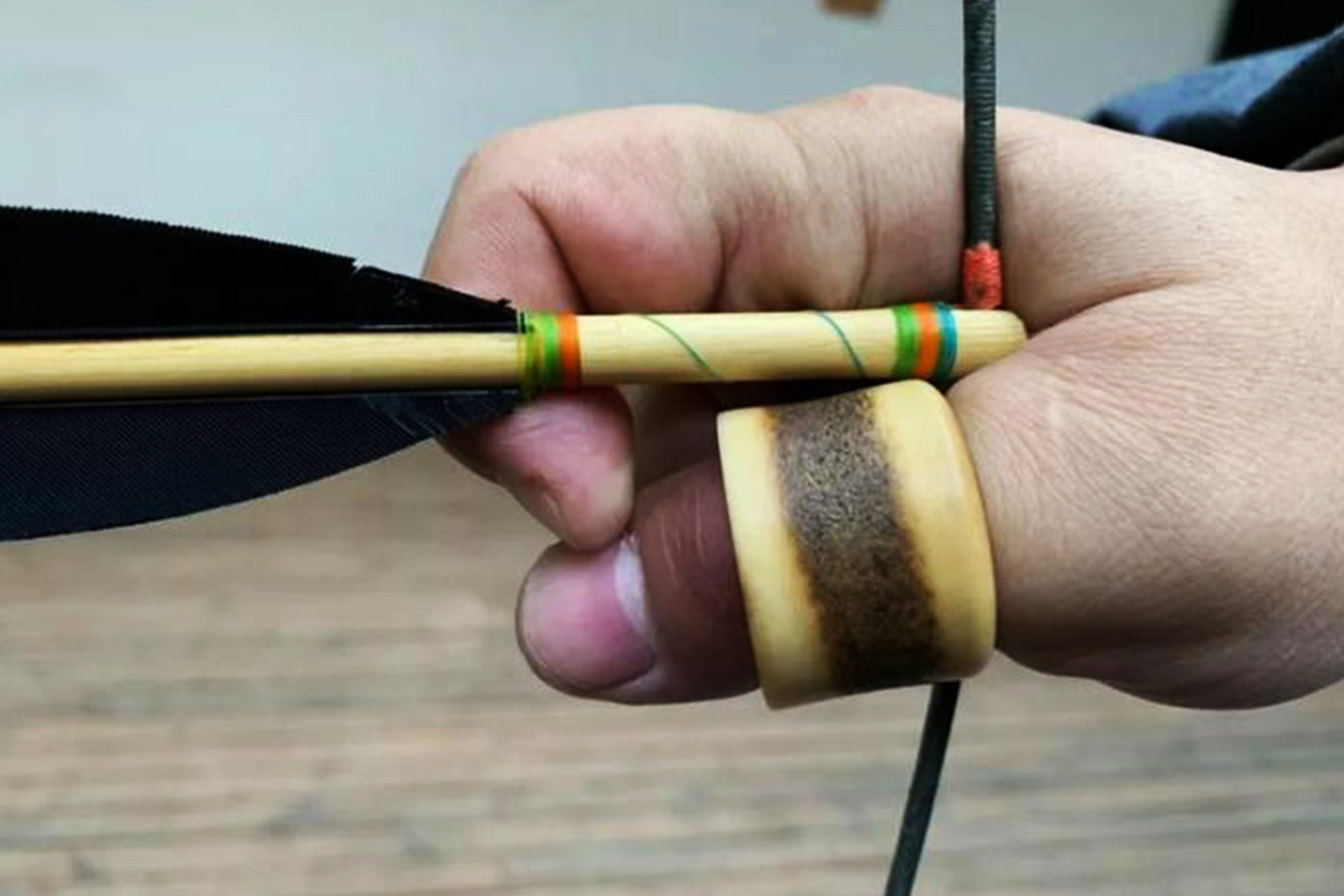 Another unique protective gear of traditional bows is the thumb ring, which is worn on the thumb of the string hooking hand to help hook the string and protect the thumb. A handy thumb ring can significantly improve the efficiency of practice.