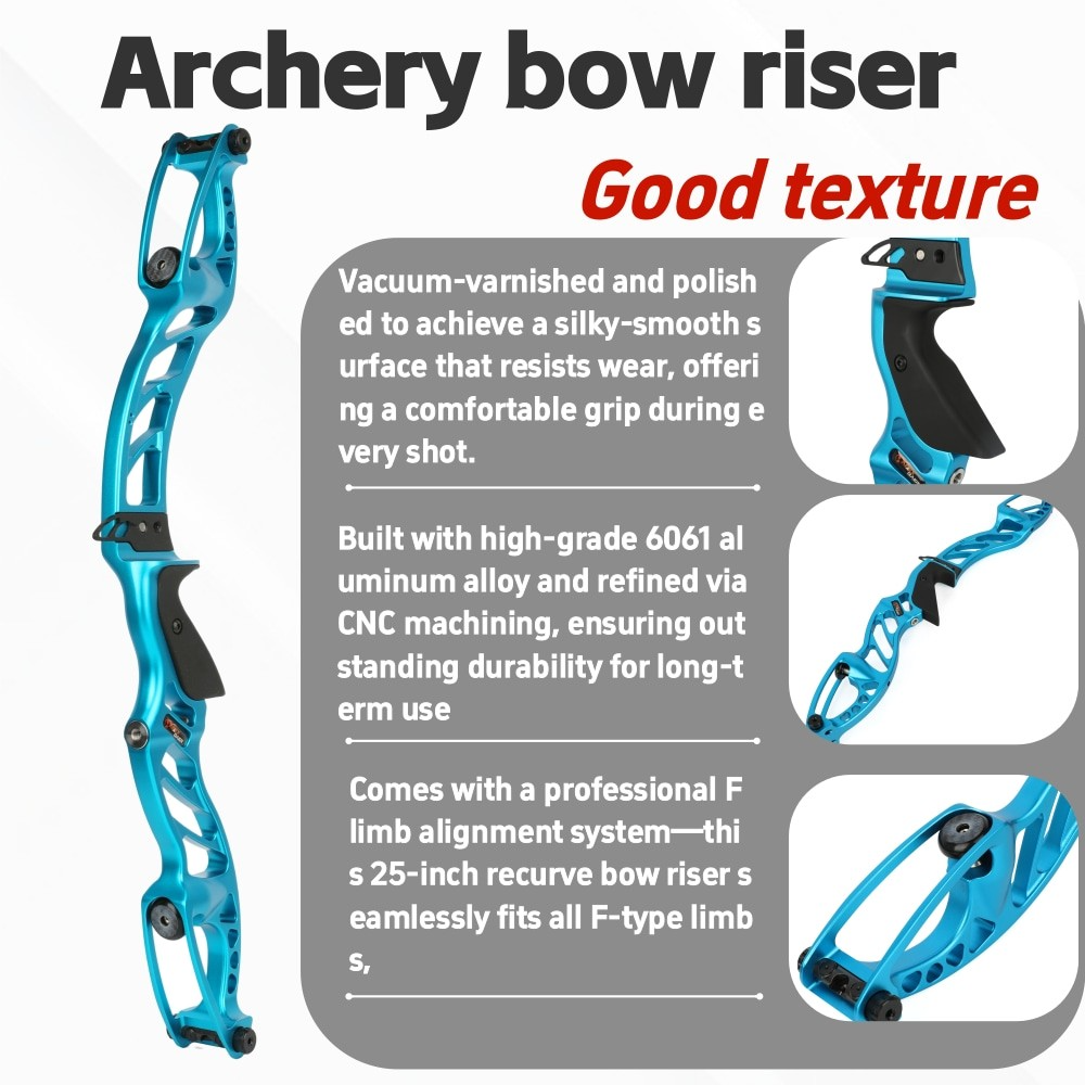 Elevate your competition performance with our Professional Competition Bow Riser, precision-engineered from aerospace-grade 6061 pure aluminum using advanced CNC machining technology. This 25-inch (63.5 cm) riser delivers exceptional stability, balance, and vibration damping—critical factors for tournament-level accuracy and consistency.