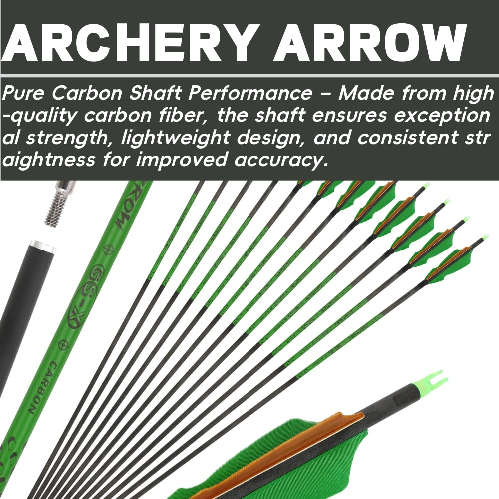 Elevate your archery experience with our premium Pure Carbon Archery Arrows, designed for precision and durability. Each arrow features a high-performance pure carbon shaft that delivers exceptional strength-to-weight ratio, ensuring consistent straightness and remarkable accuracy shot after shot.