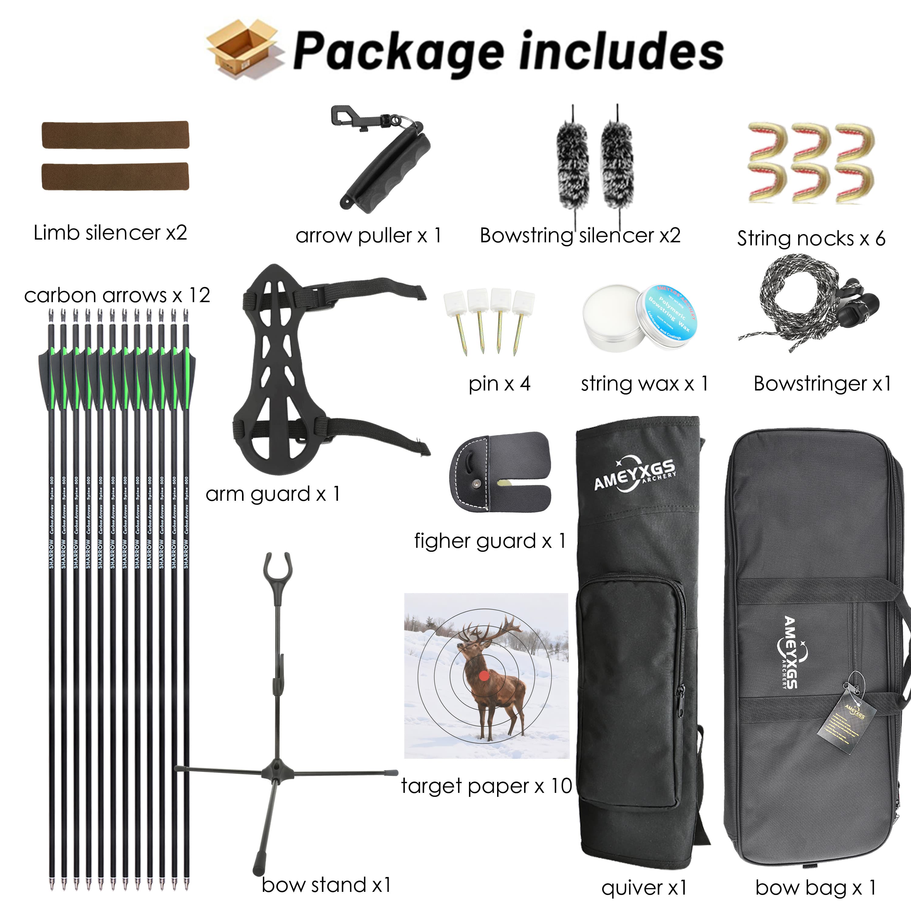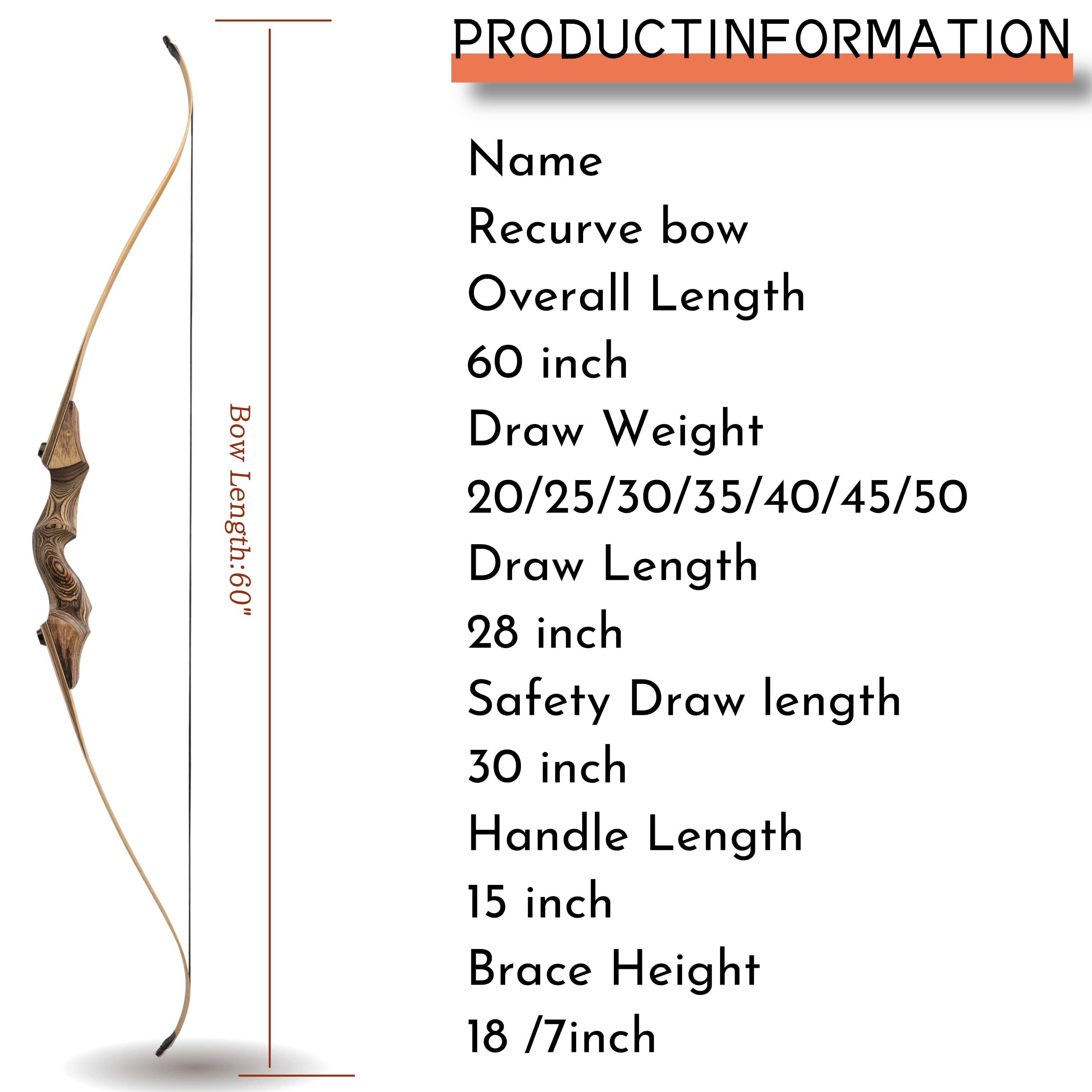 1.Draw Weight Range – Available in 5lb increments from 20 to 60 lbs, making this bow suitable for archers of all abilities, from firsttime users to experienced shooters.