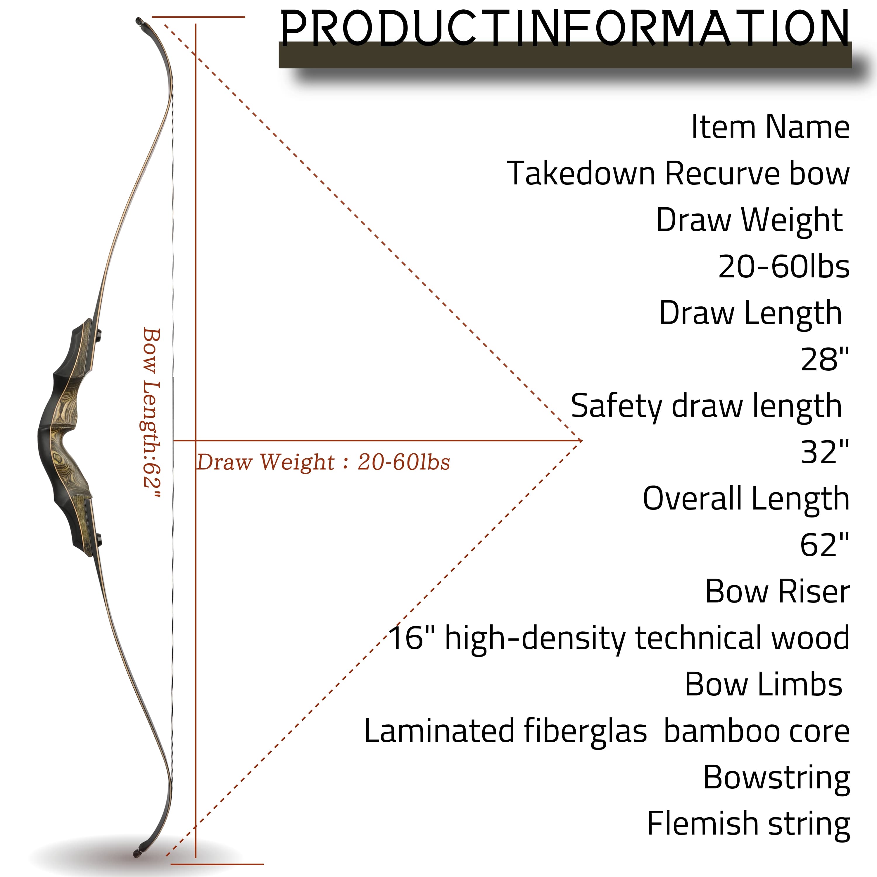 Item Name: Takedown Recurve bowColor:Photo Shows