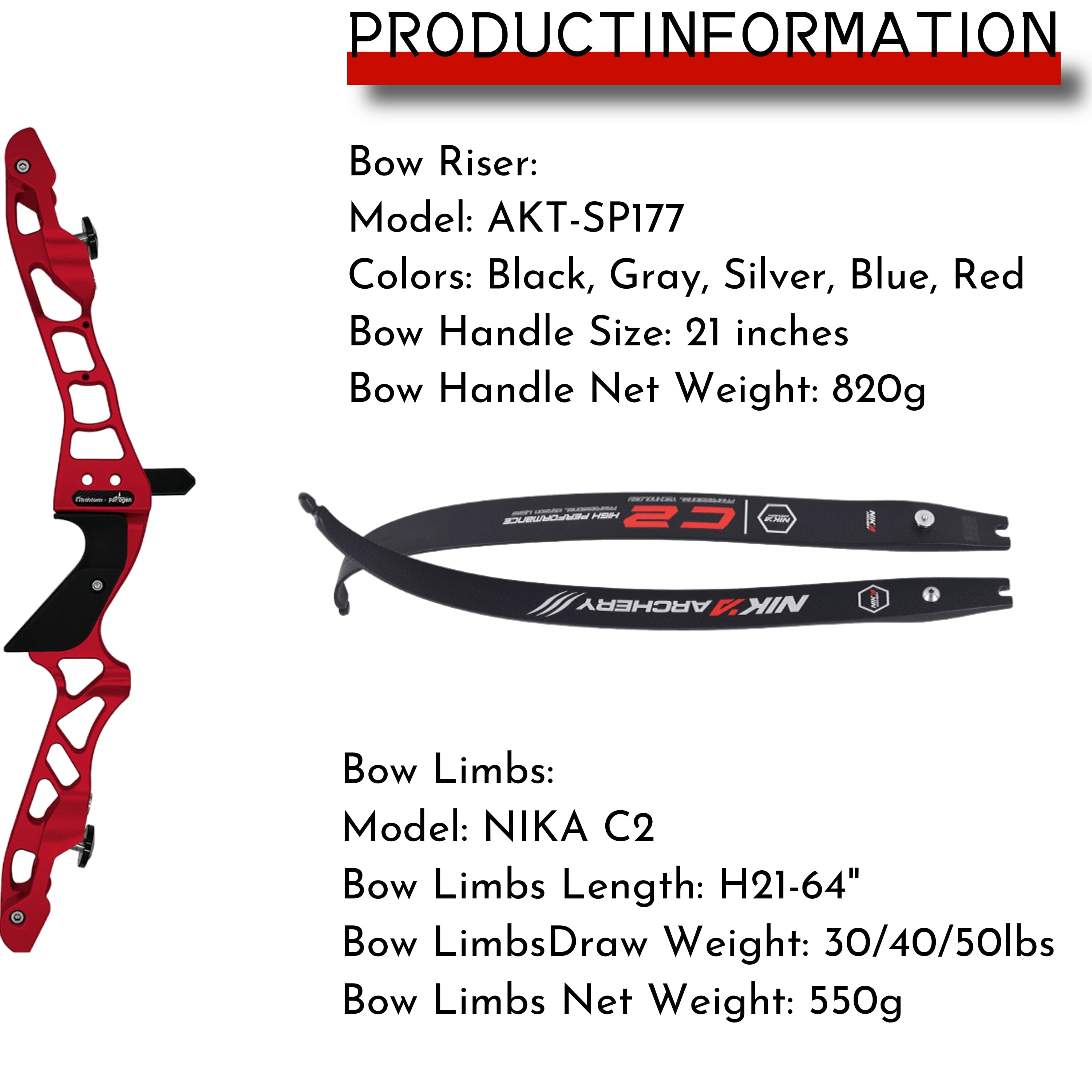 Versatile Limb Power: NIKA C2 limbs offer three draw weight options (30lbs, 40lbs, 50lbs) to match your skill level and purpose.