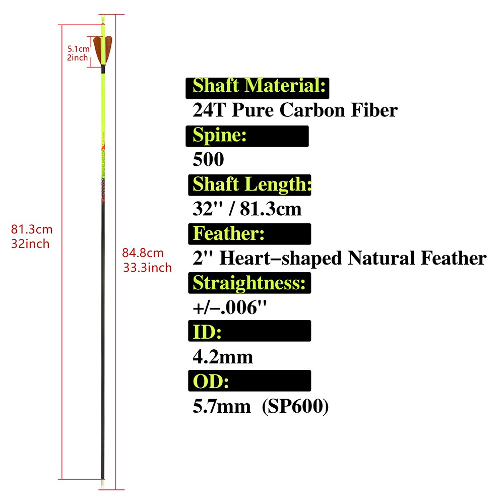 【100% Pure Carbon】24T Pure Carbon Arrows made of pure carbon, lighter than wooden arrows and stronger than aluminum arrows. Precision-crafted for better flight characteristics and higher accuracy in archery. Not easily damaged. Break
