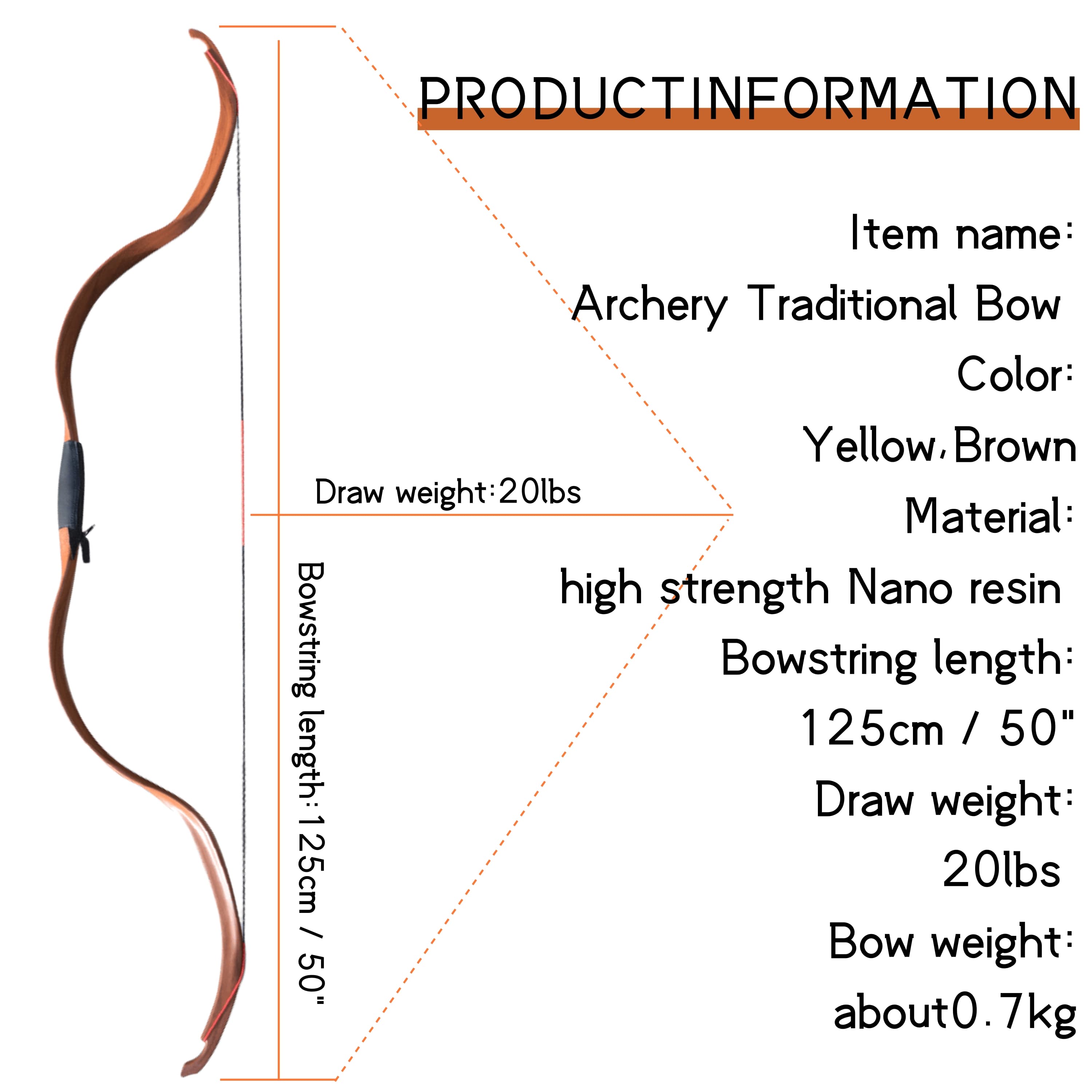 • Bow Length: 125 cm / 49 inch