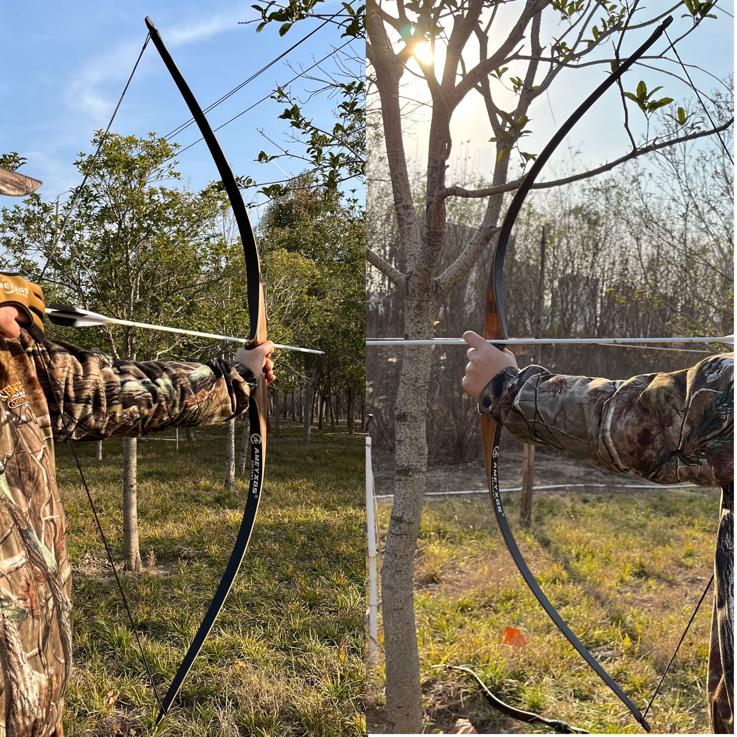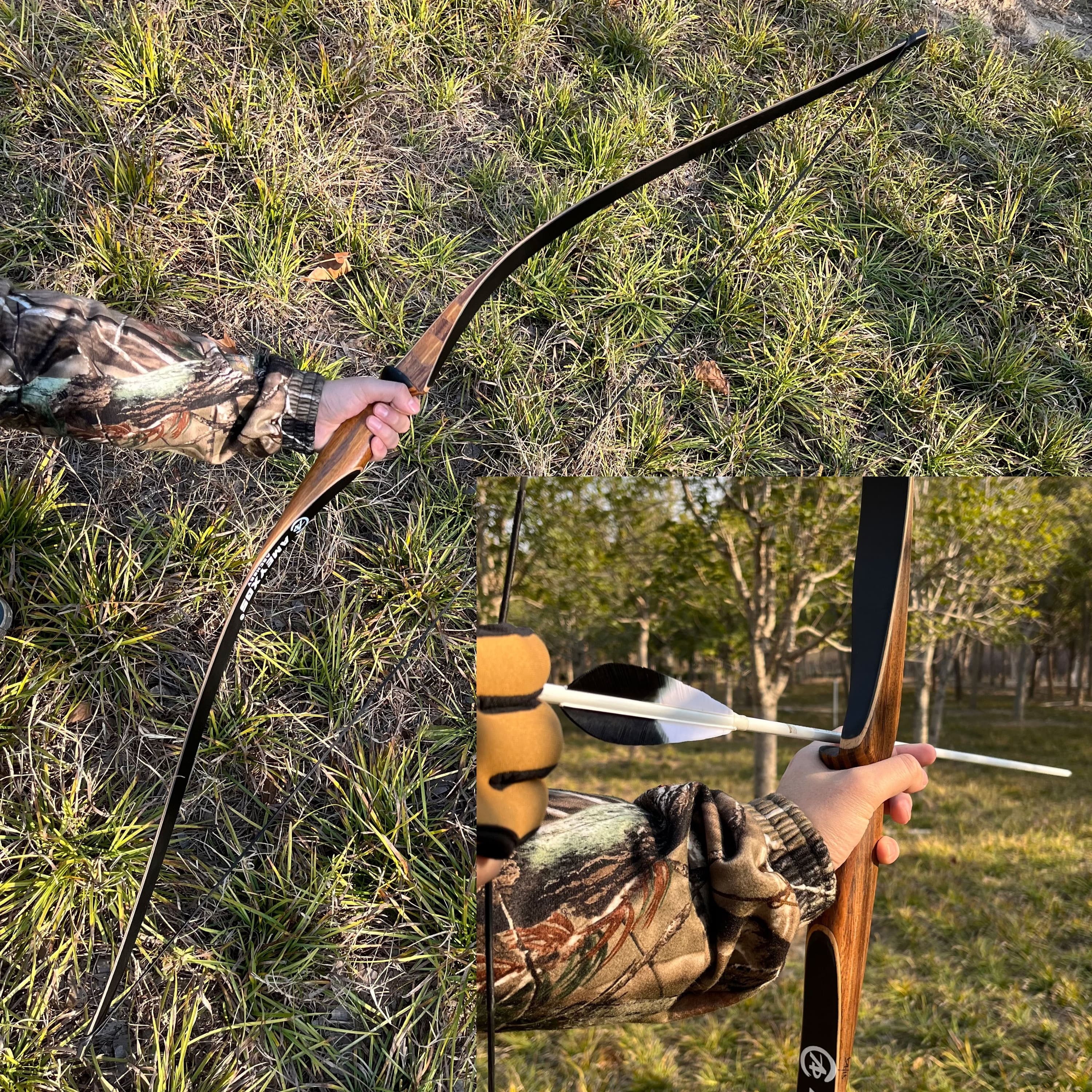 Crafted from diamond wood, beech wood, and bamboo core, with high-strength black fiberglass limbs.