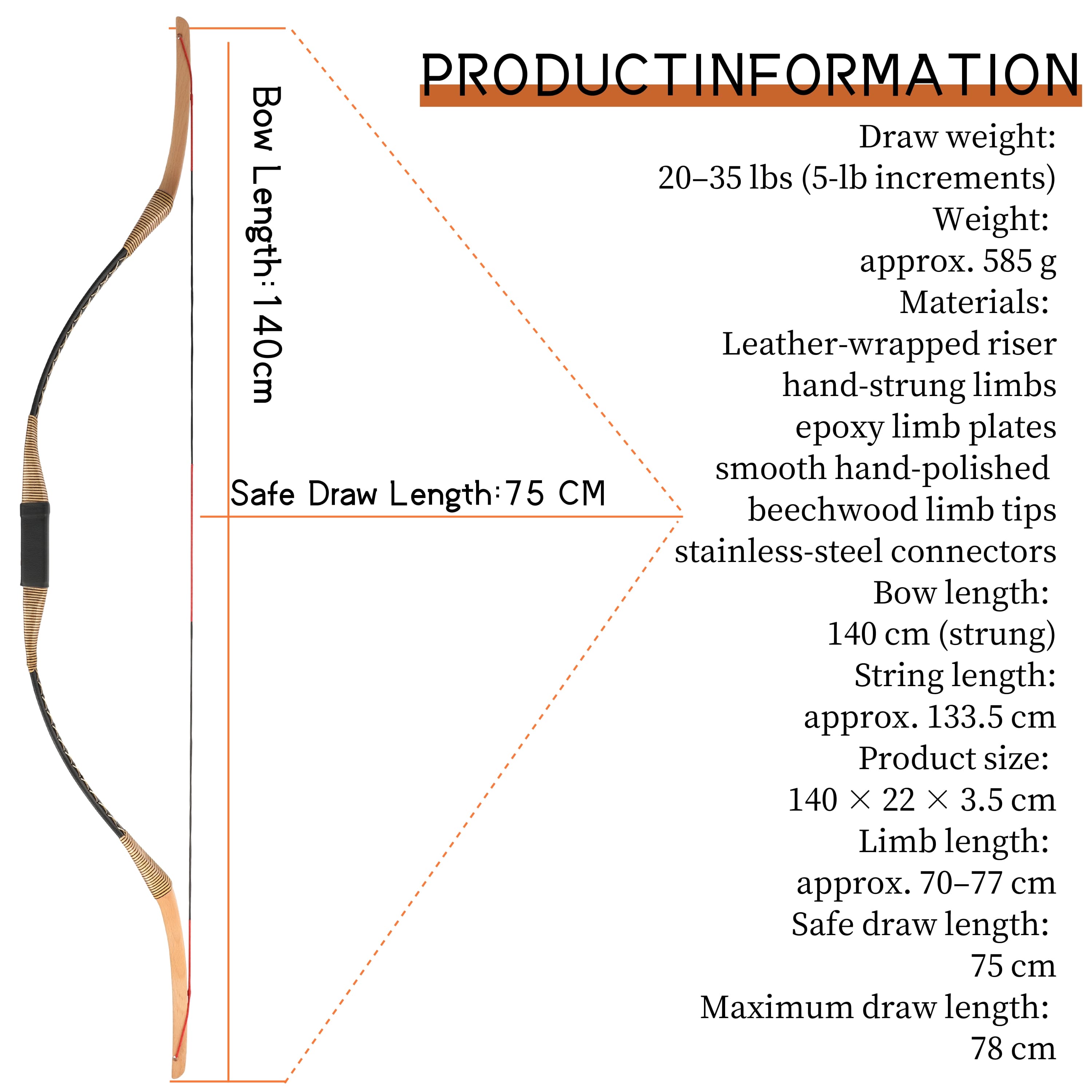 - Draw Weight: 20lbs, 25lbs, 30lbs, 35lbs