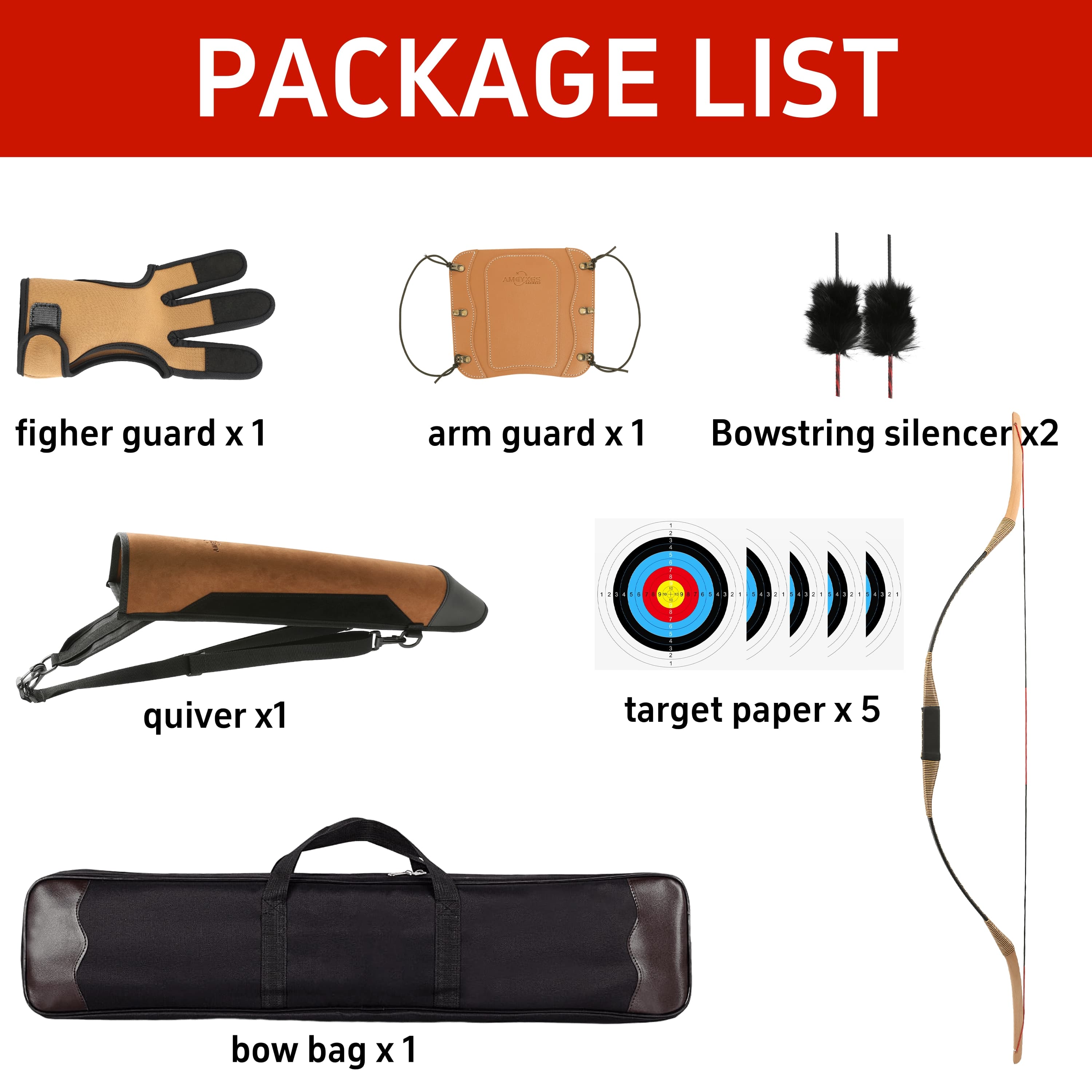 - 1 x Takedown Traditional Bow,