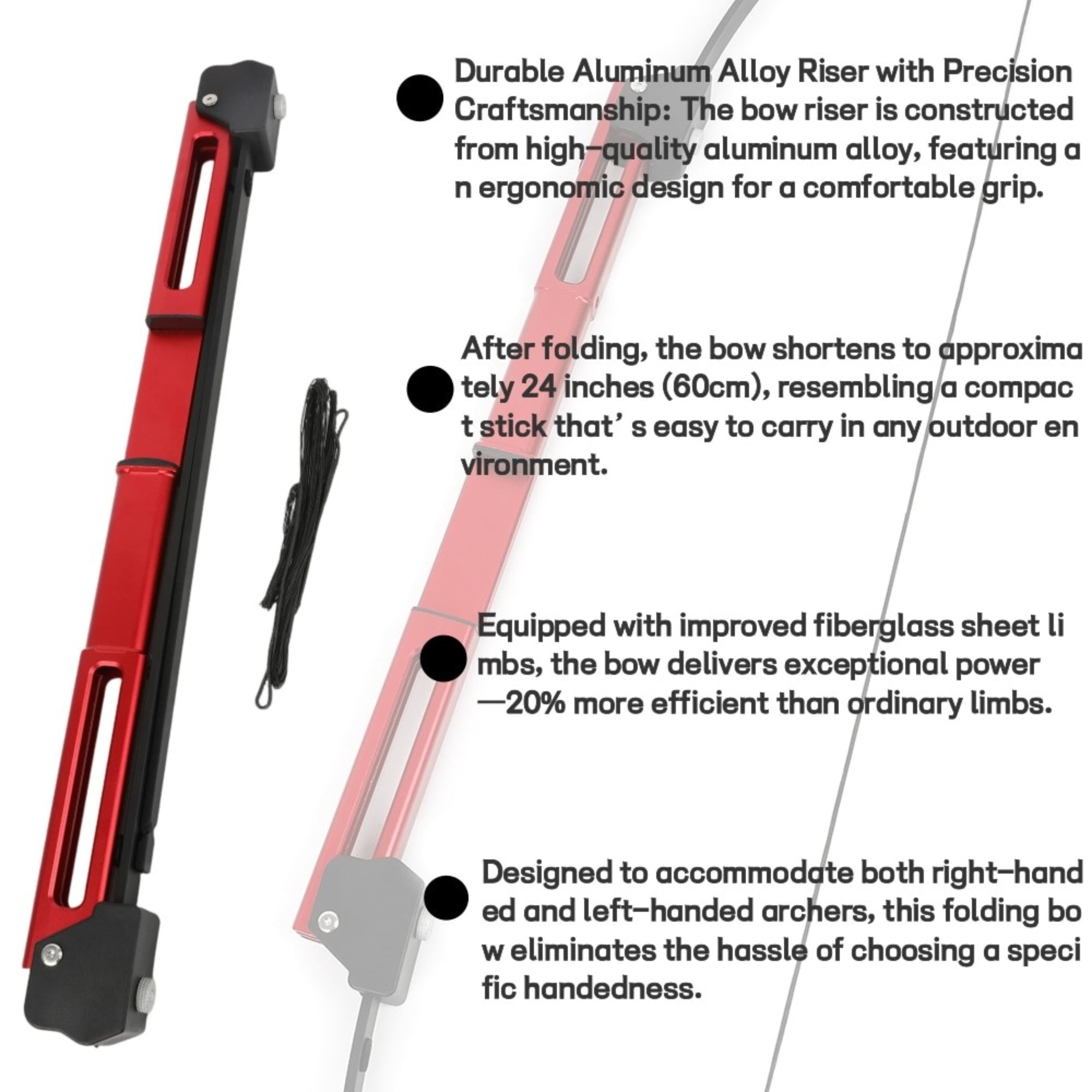 The bow folds down to a compact 60 cm (24-inch) stick-like size, making it exceptionally easy to transport and store in its included carry bag, perfect for travel and outdoor adventures.