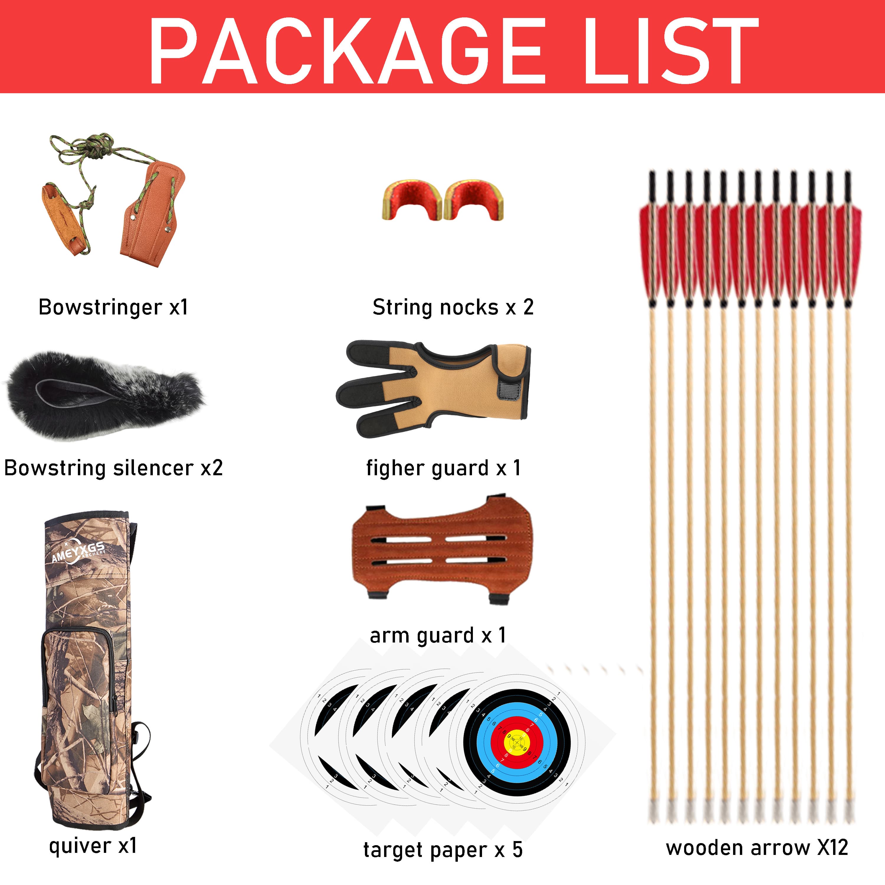 Bowstring: Dacron bowstring in a mix of black and red colors. Replacement string length of 54" recommended.