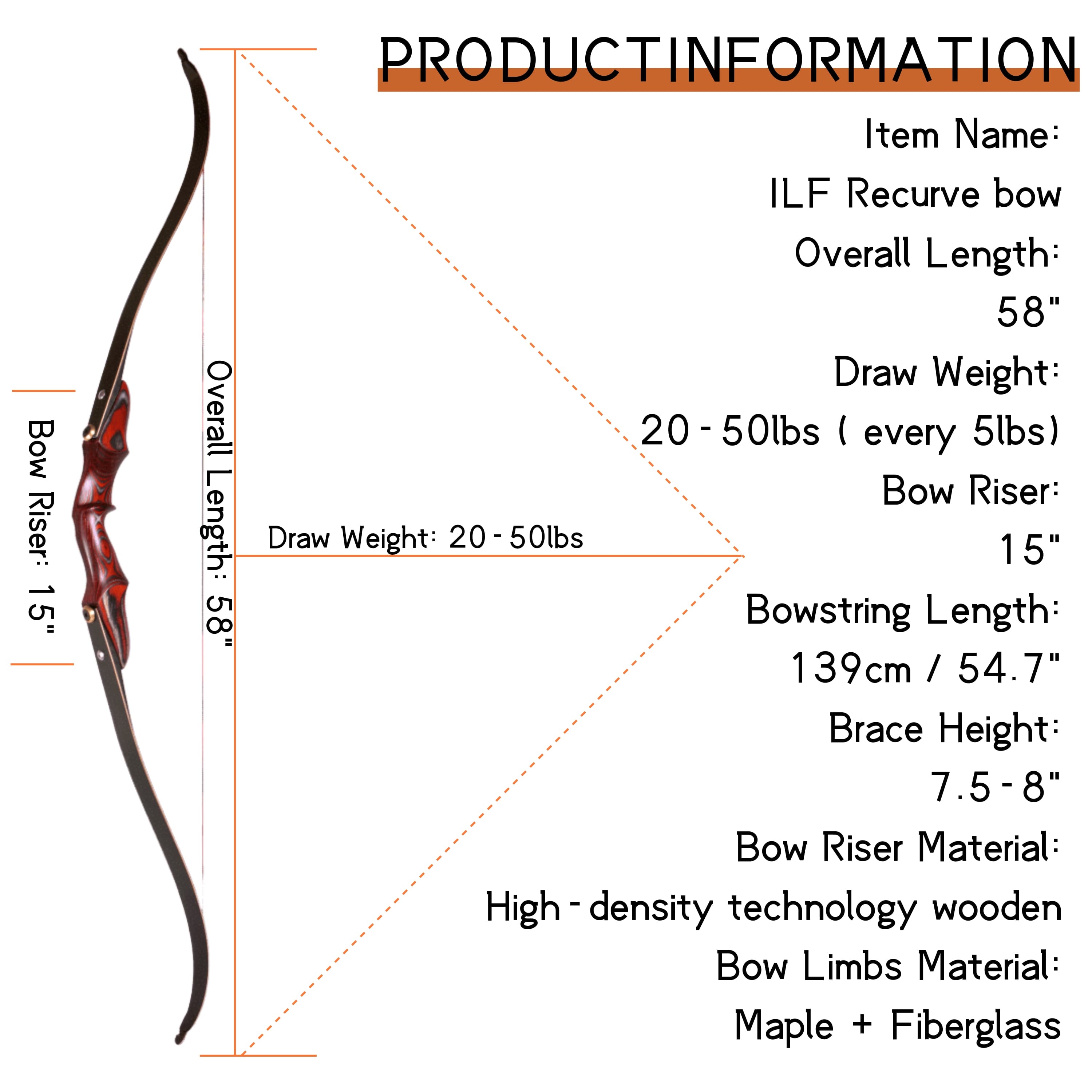This 58-inch ILF recurve bow perfectly combines traditional aesthetics with modern technology, making it an ideal choice for all types of archers and every archery enthusiast.