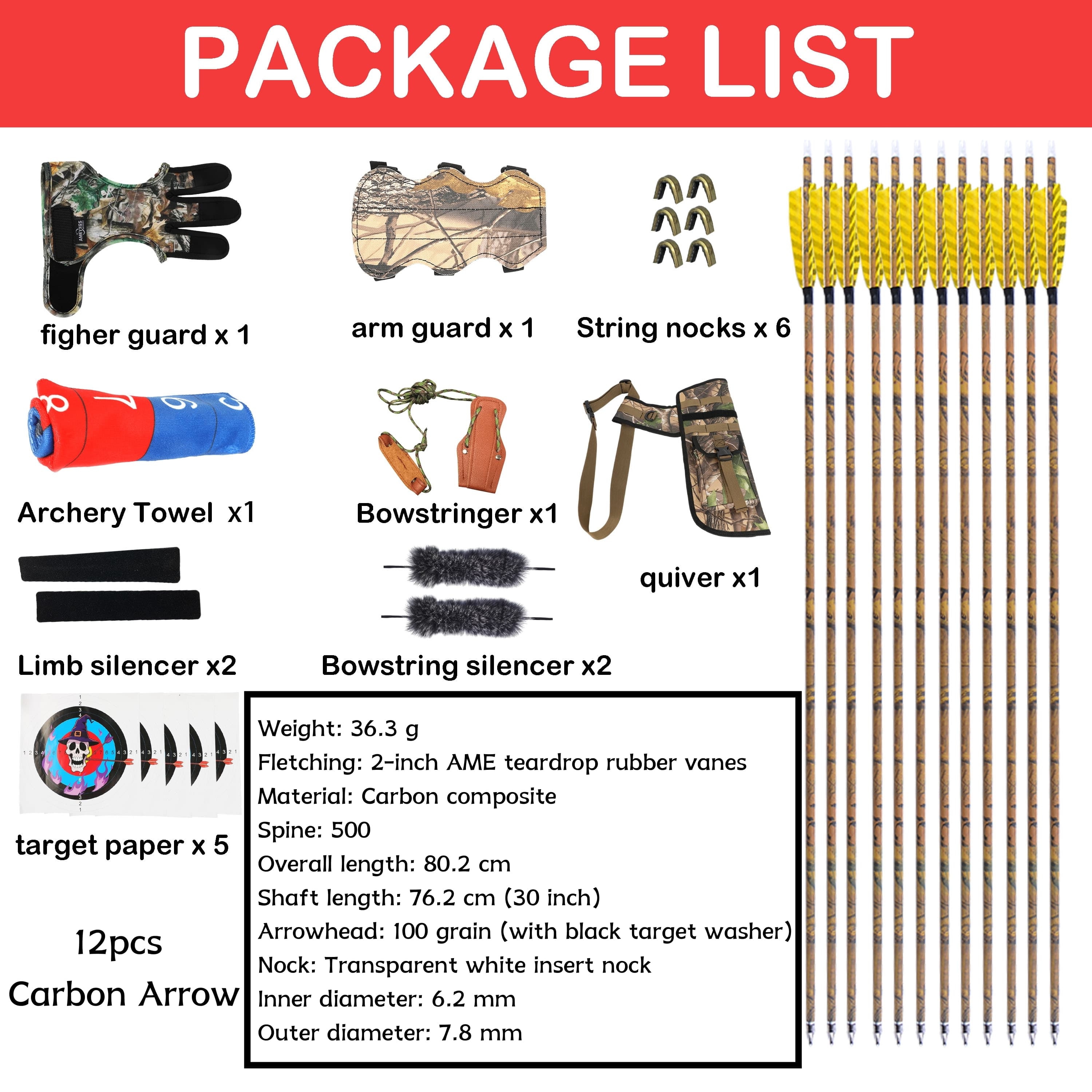 - 12 x Carbon Arrows
