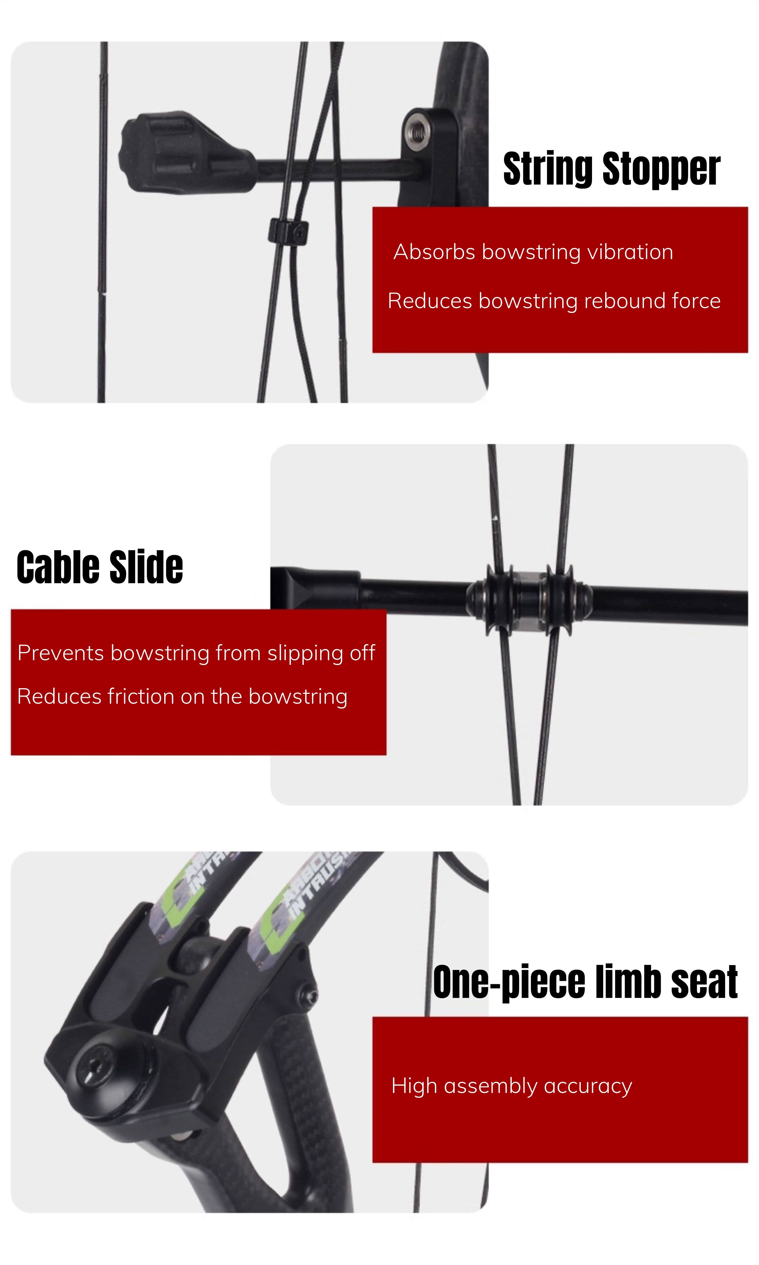 - The bow is constructed from a CNC-machined, one-piece carbon fiber body, offering lightweight, high stability, premium quality, and a clear push point.