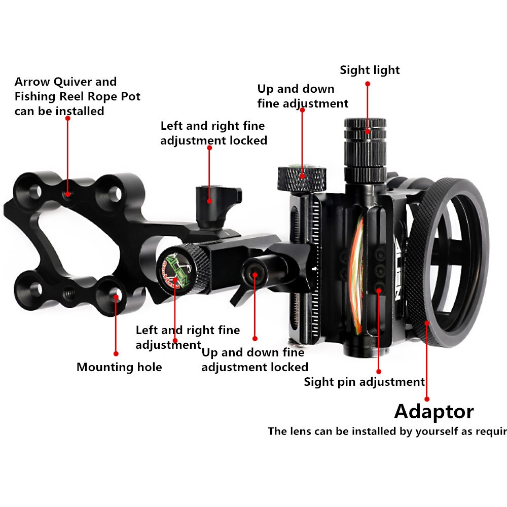 Micro-adjustable 5 Pin Bow Sight for hunting or 3D shooting.