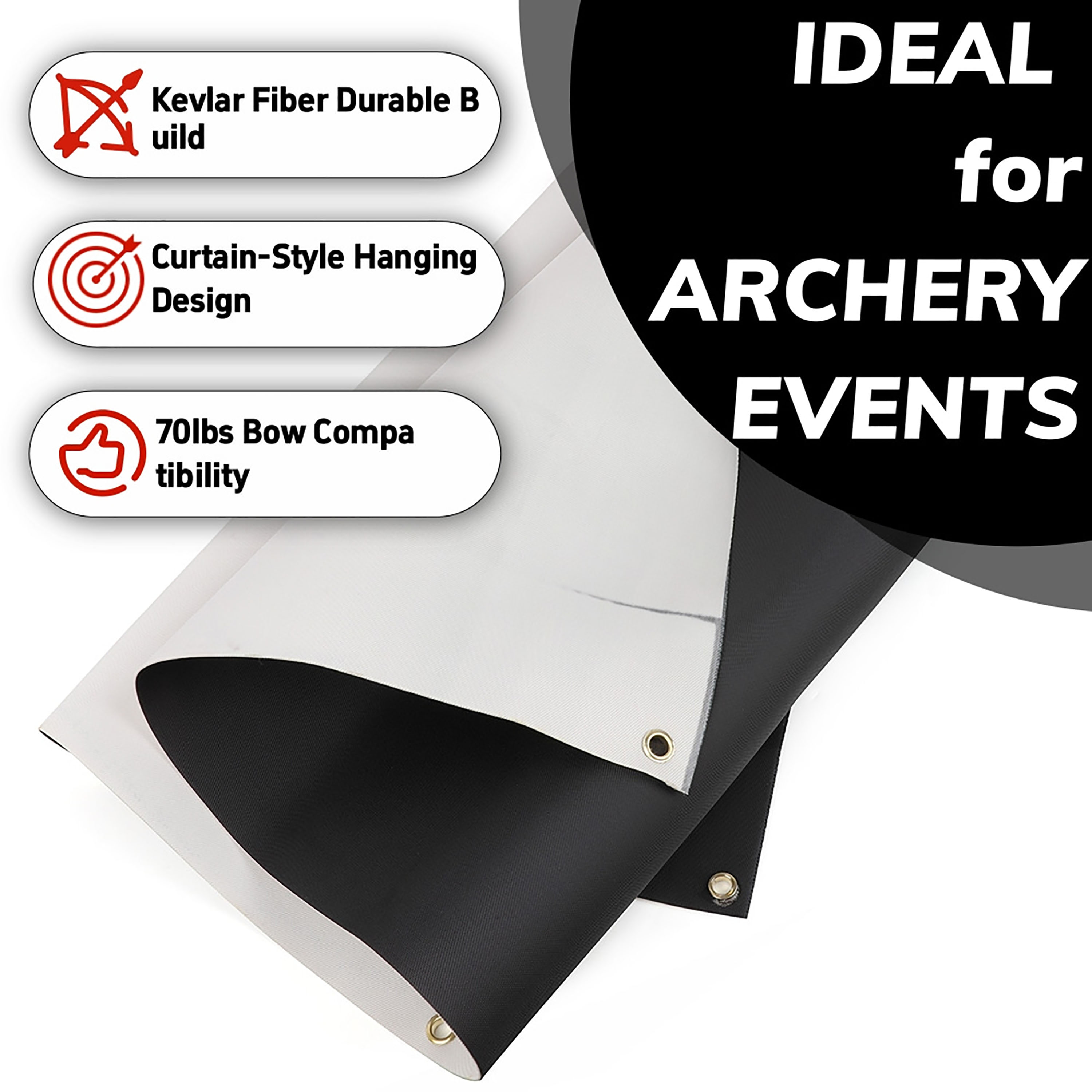 Flexible Curtain Design: Designed to hang loosely like a curtain, this backstop maintains optimal stopping power by avoiding tight pulls that could compromise its arrow-blocking effectiveness.