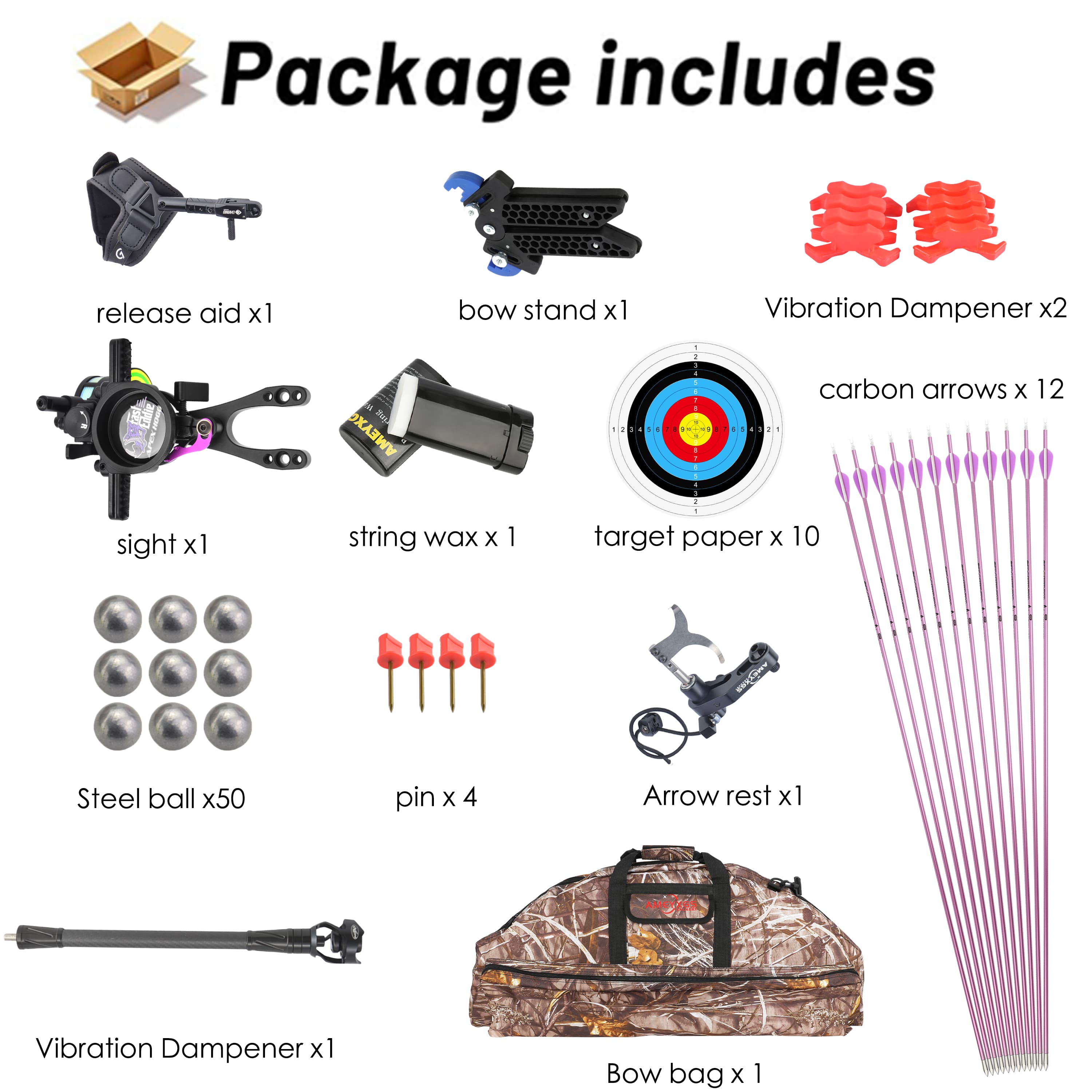 - Standard blood wheel eye shock absorption, increases weight while reducing bow body vibration, more stable force.