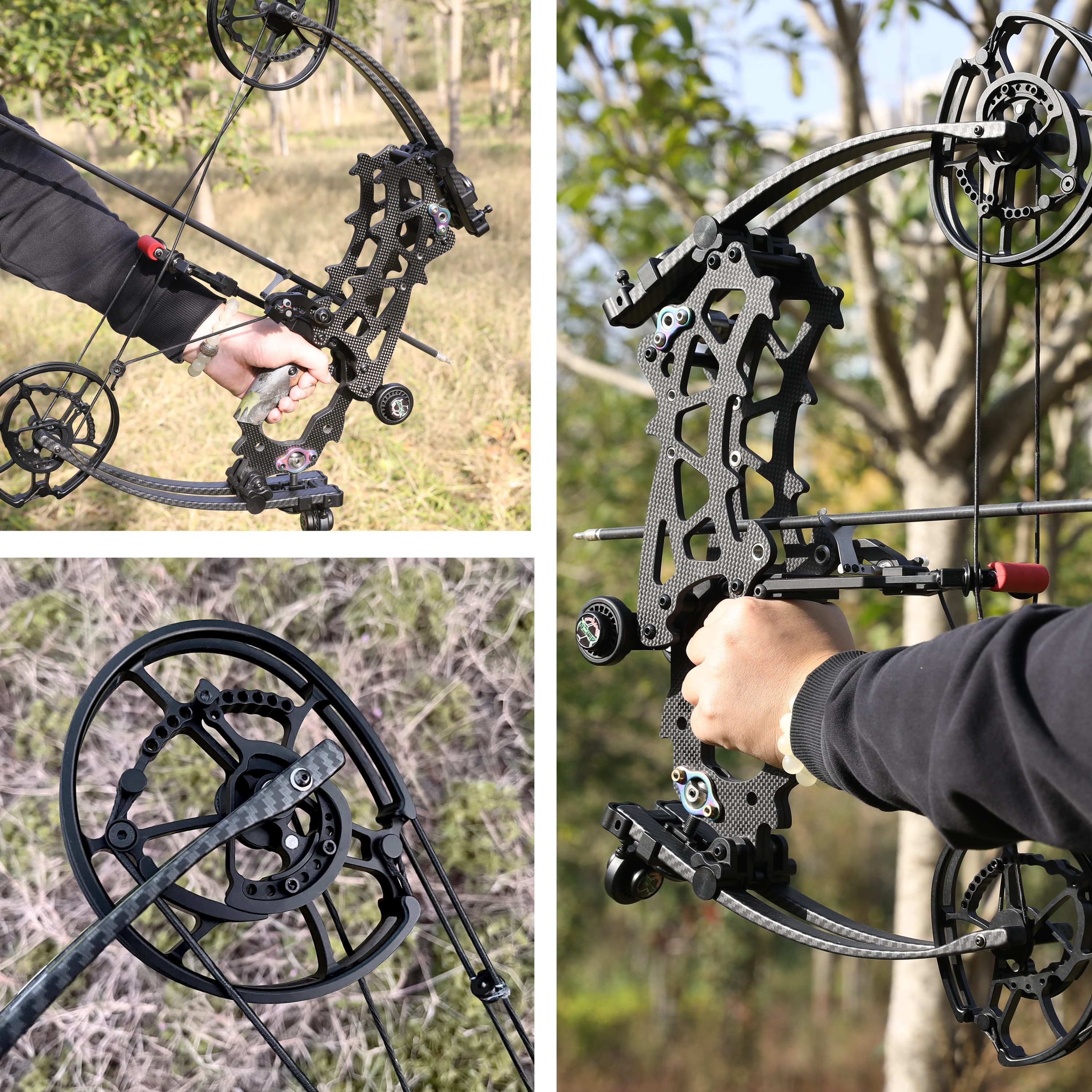 The Black Compound Bow delivers elite performance in a sleek, modern package. Crafted from durable carbon, this bow offers a wide adjustable range of 40-70 lbs in draw weight and 25-30 inches in draw length, ensuring a customizable fit for archers of all skill levels.With an impressive 80% let-off and a compact 20-inch axle-to-axle design, it excels in stability and smooth shooting. Rated for arrow speeds up to 340 FPS and kinetic energy capable of 380 FPS steel ball equivalence, this bow is built for precision, power, and hunting readiness—all within a lightweight, easy-to-handle frame weighing just 1.9 kg.