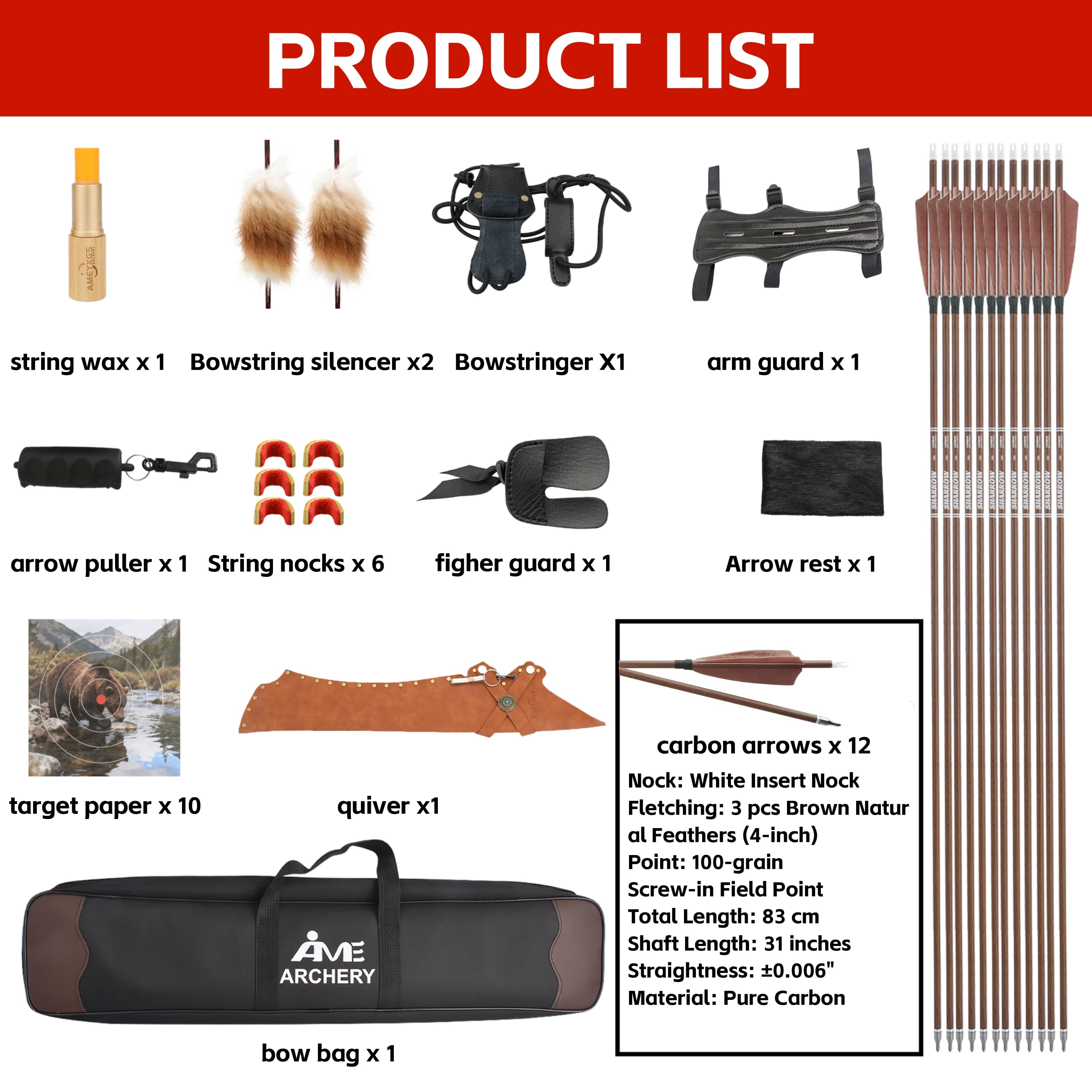 Brace Height: 7-8" (7.5" is optimal)