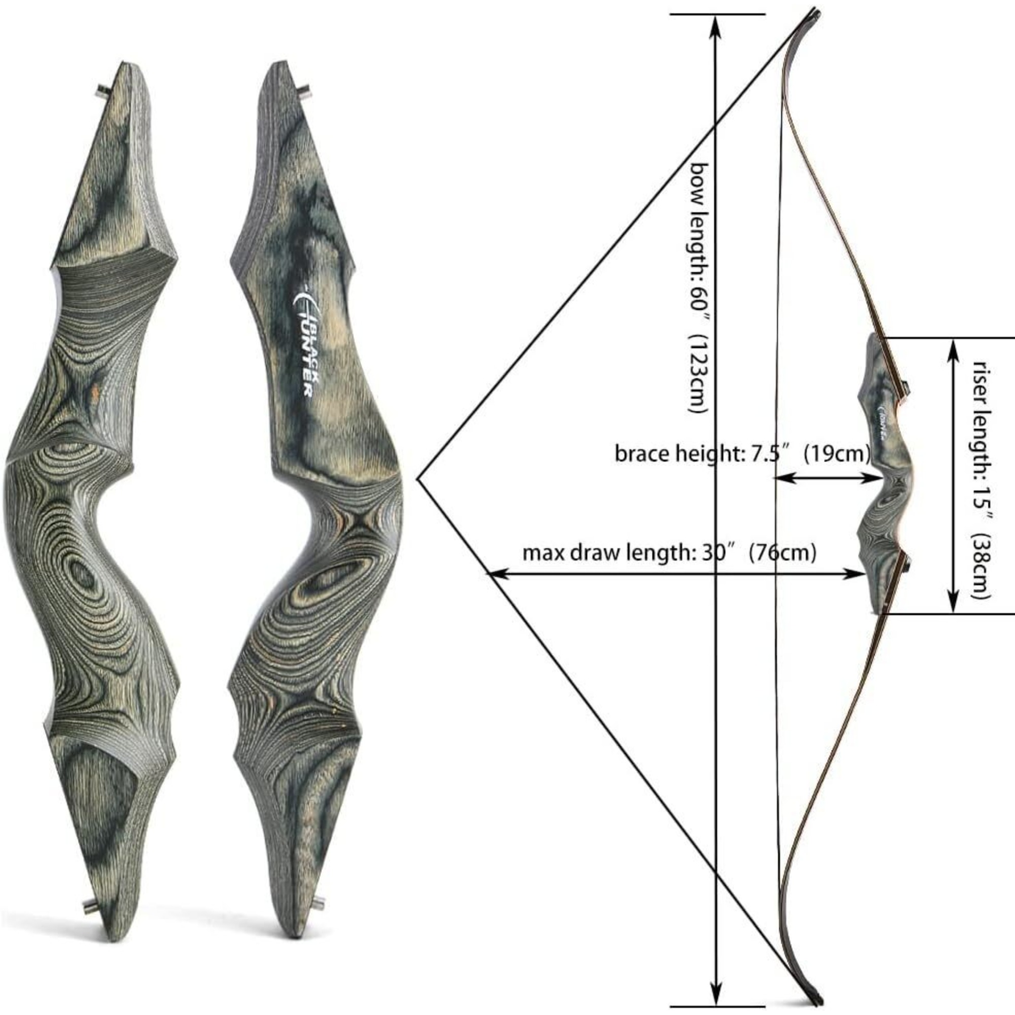 Original Black Hunter Brand, Takedown Bow 6Oinch,Both Riser,Limbs and Bowstring are 100% original black hunter.