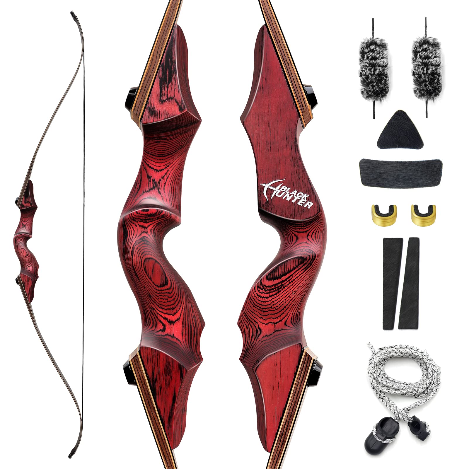 Package includes: 1 riser, 2 limbs, 1 bowstring, 1 fur arrow rest, 2 bowstring silencers, 1 bow stringer