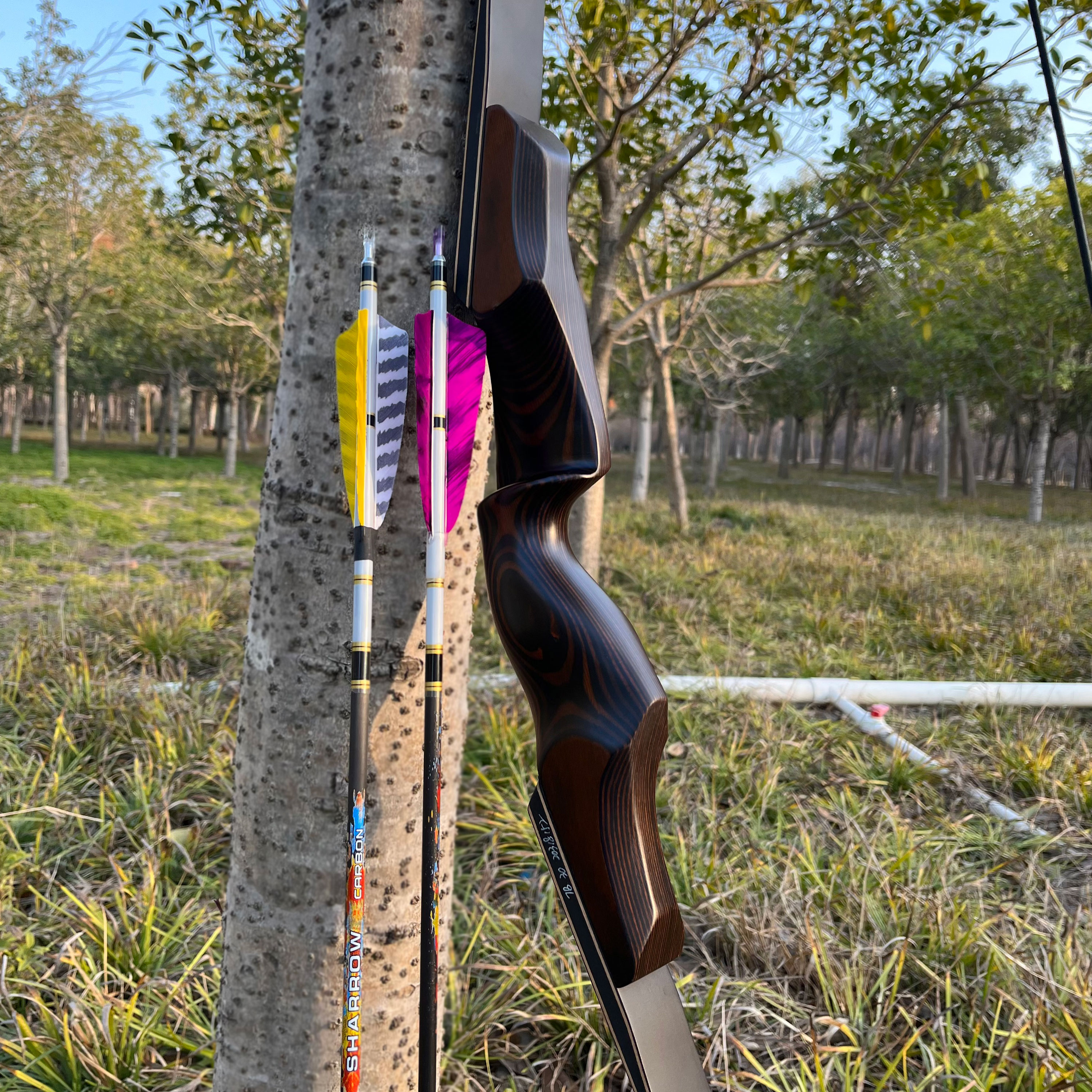 Construction combines durable bamboo core with high-quality fiberglass using German lamination technology, ensuring smooth drawing and excellent shooting performance.