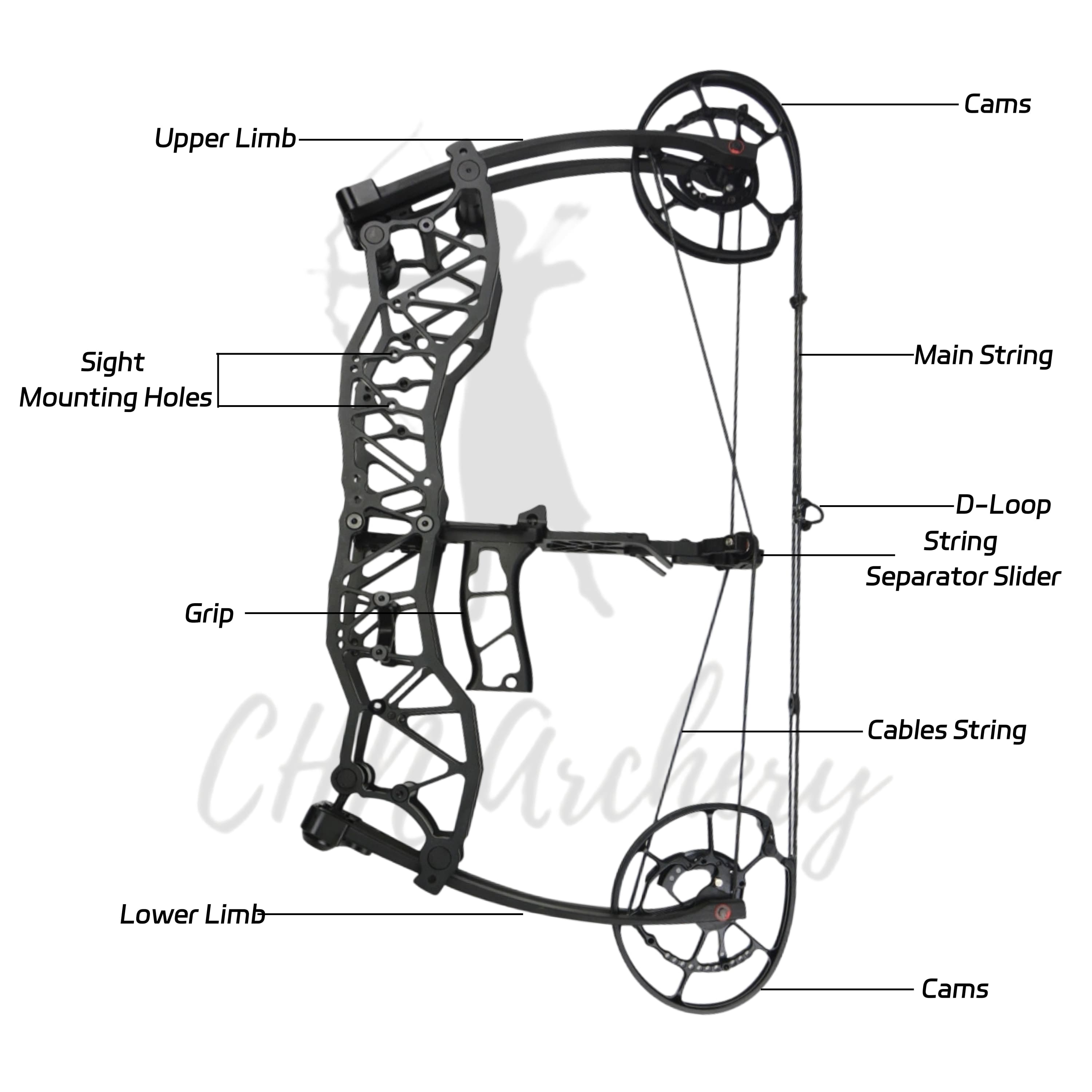1.Precision CNC Machined Riser and Cam: Crafted from high-quality 7075 Aluminum, both the riser and cam are precision CNC machined for ultimate strength, durability, and performance.