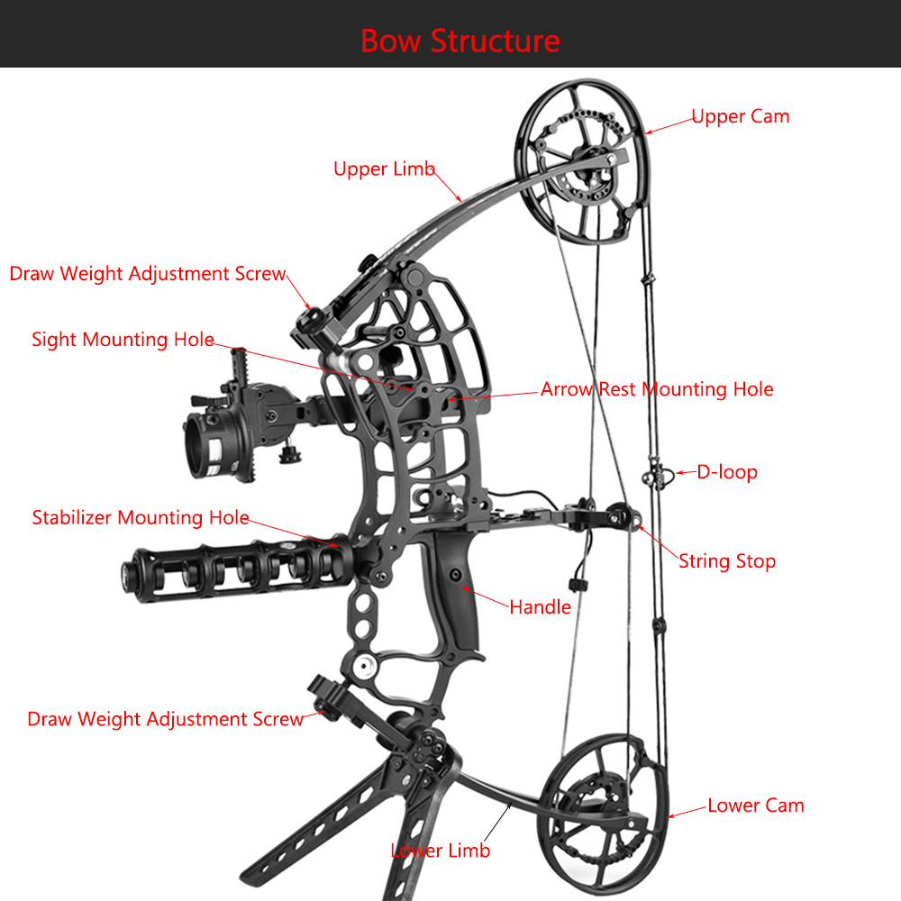 25-30 inches draw length fully adjustable: “+” reduces draw length clockwise, “-” increases draw length counterclockwise, adjustment is simple, 0.5 inch per grid.