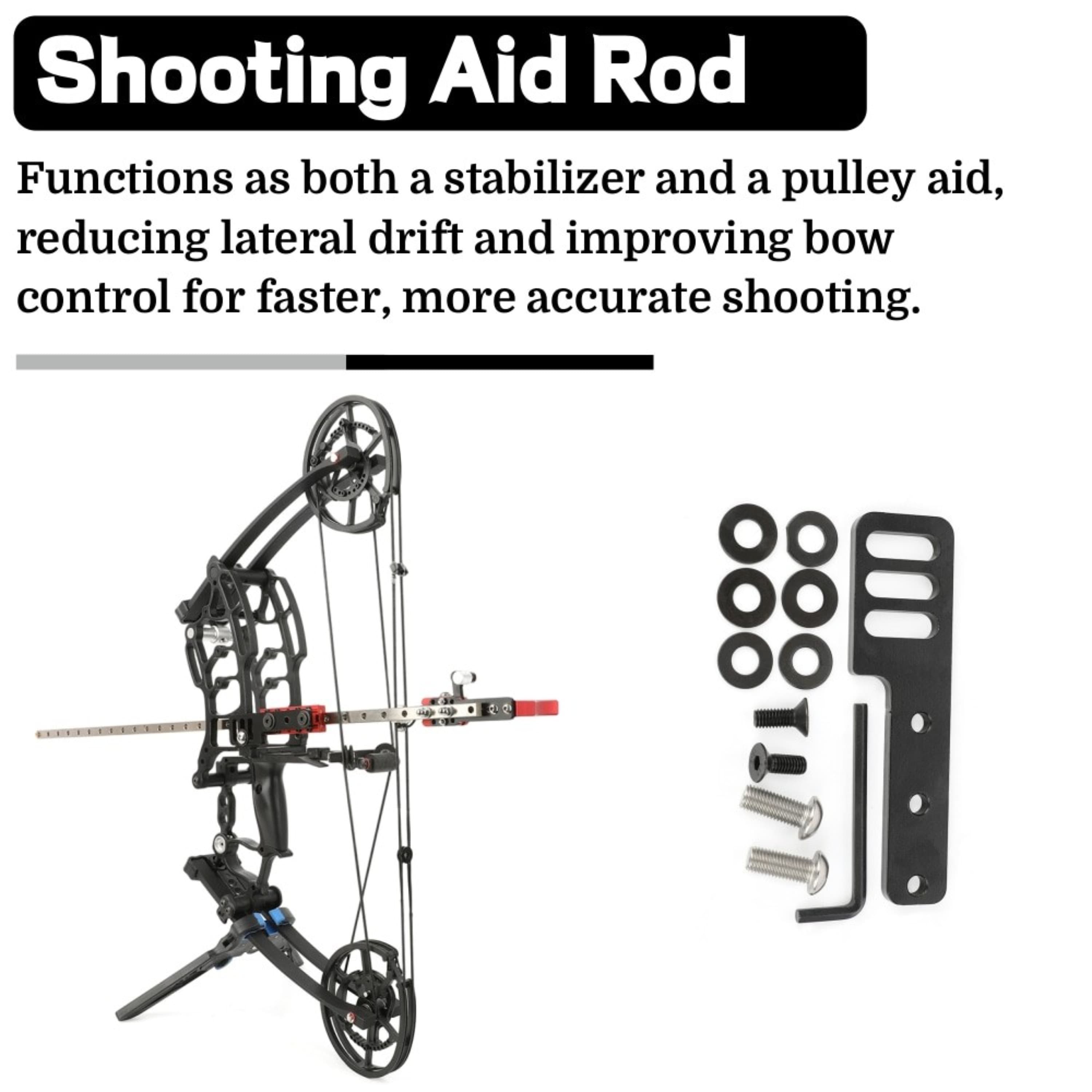 Serves as both a stabilizer to reduce lateral drift and a pulley assistance device, enhancing bow control for faster, more accurate shots with steel balls.