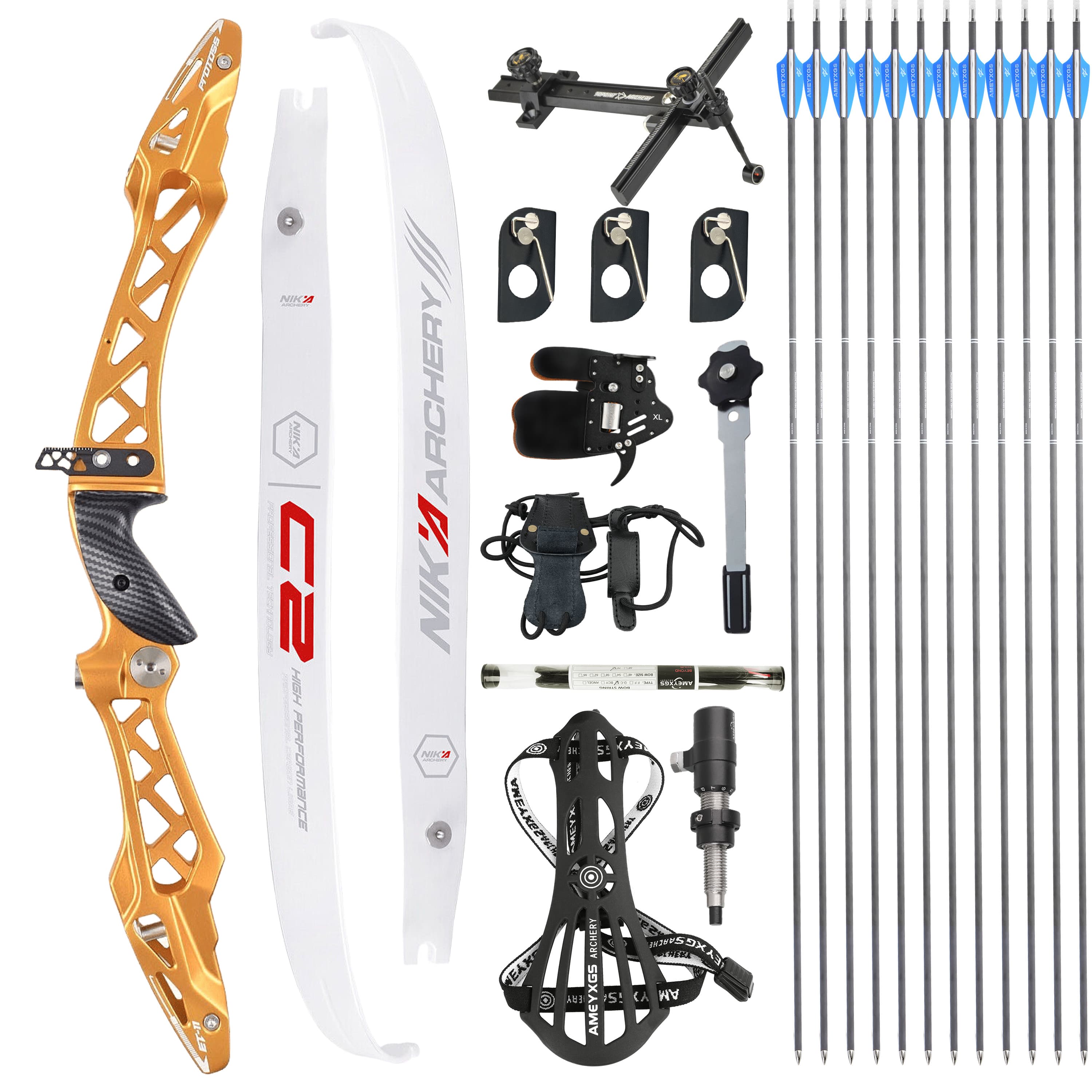 1. Basic bow equipment: Bow riser × 1, Bow limbs × 2, Bowstring × 1