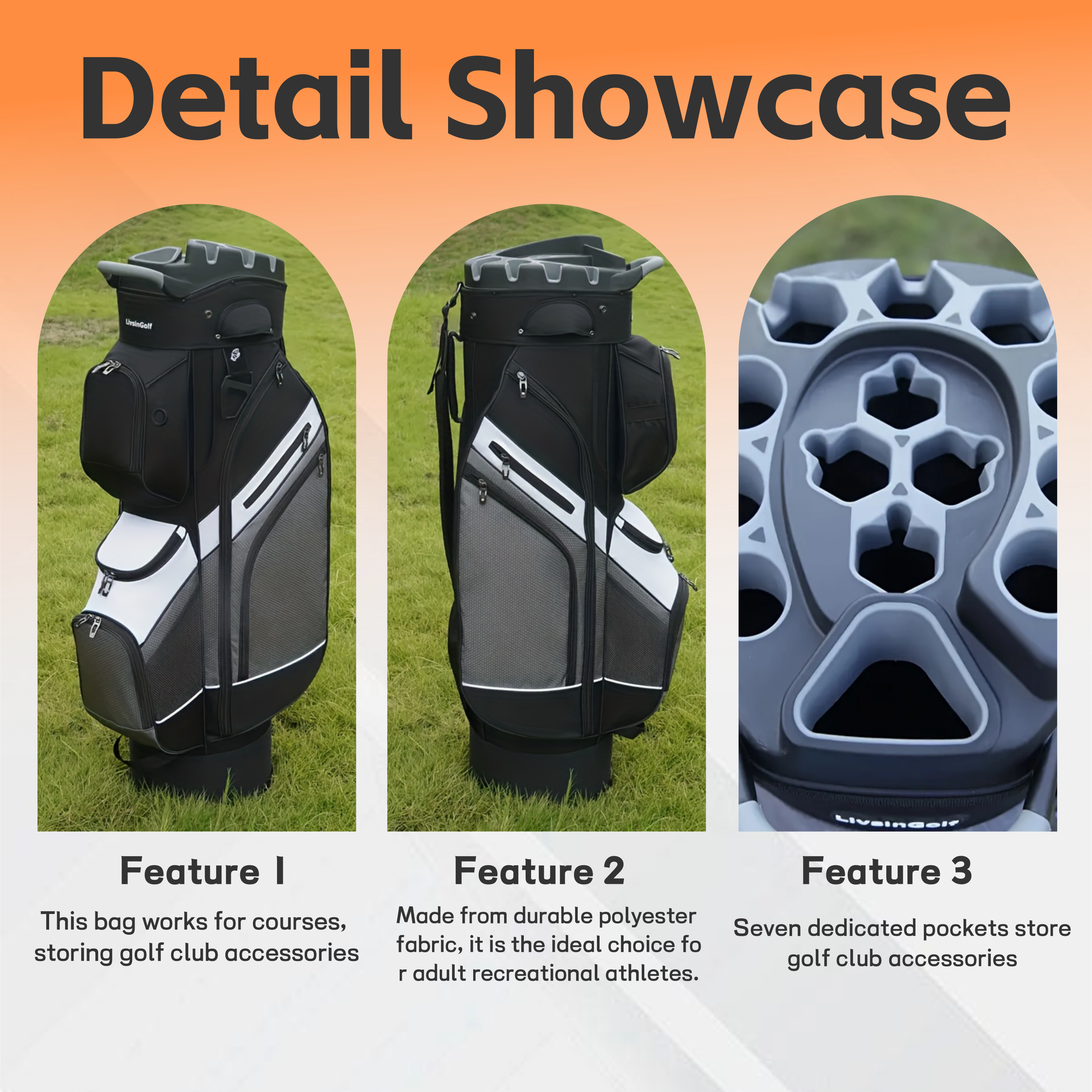 - 7 specialized pockets keep accessories (balls, tees, etc.) organized. Enjoy a hassle-free round with everything you need at your fingertips.