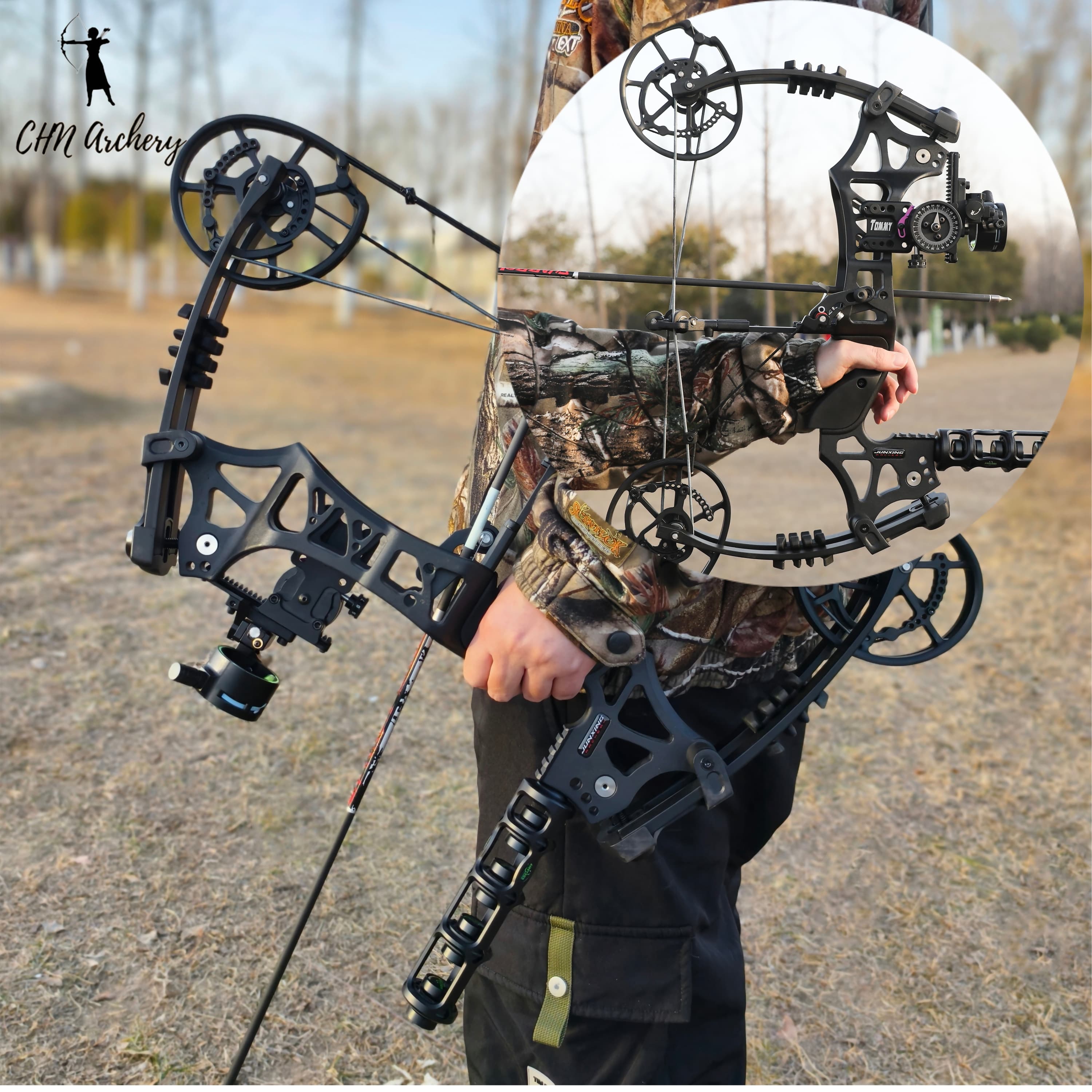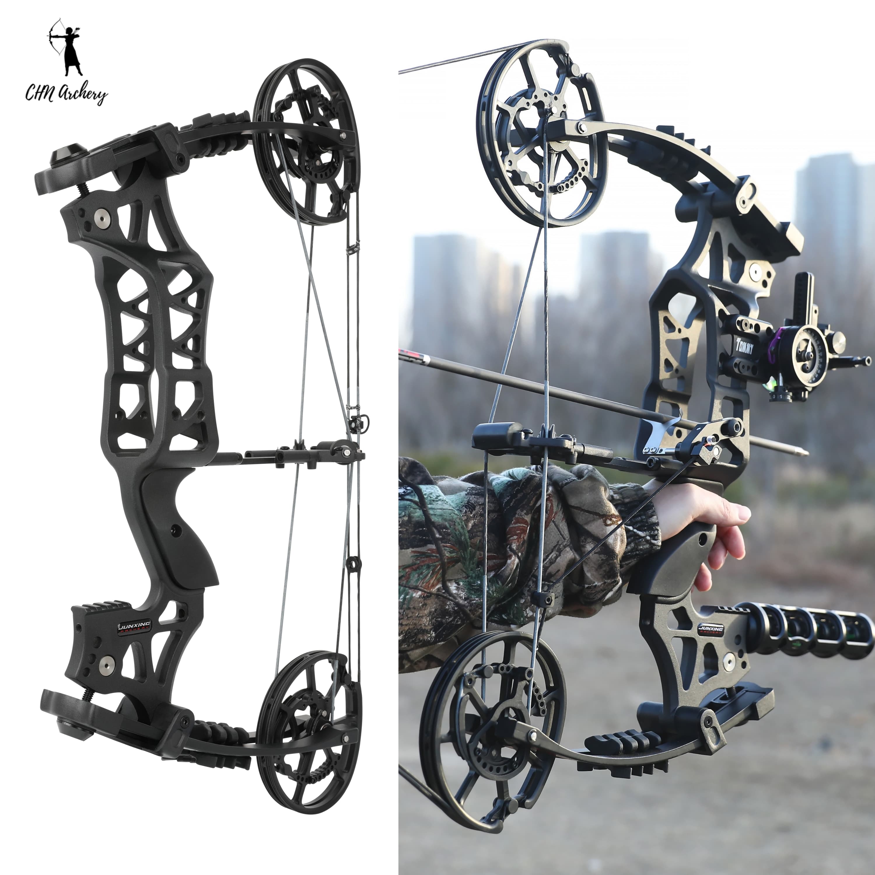 Powerful dual-purpose compound bow designed for both arrow shooting and steel ball projection, meeting archery practice, outdoor hunting and bowfishing needs.
