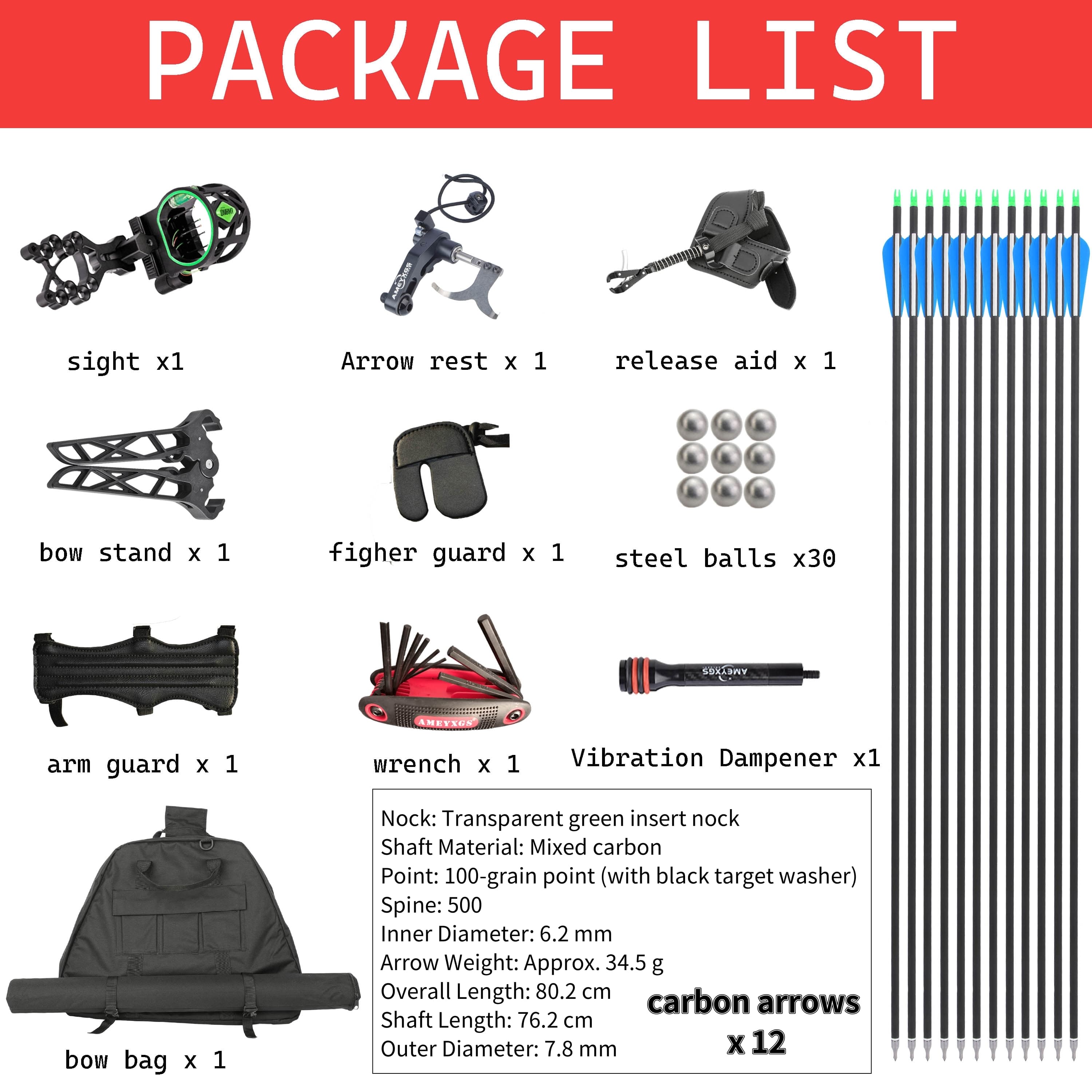 340 FPS arrow speed, 460 FPS steel ball velocity