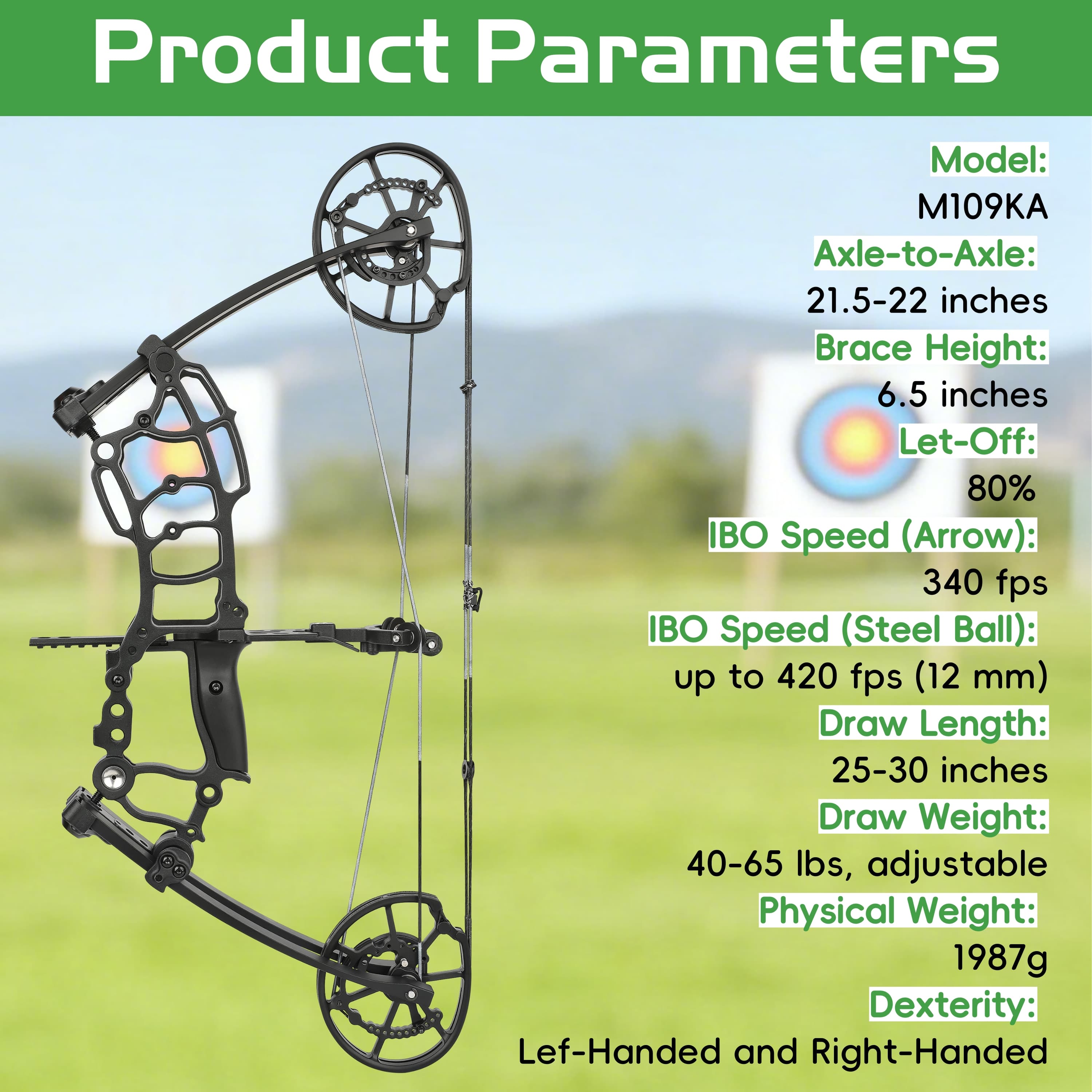 Featuring adjustable 40-65 pound draw weight and 25-30 inch draw length, it accommodates shooters of various sizes and skill levels.