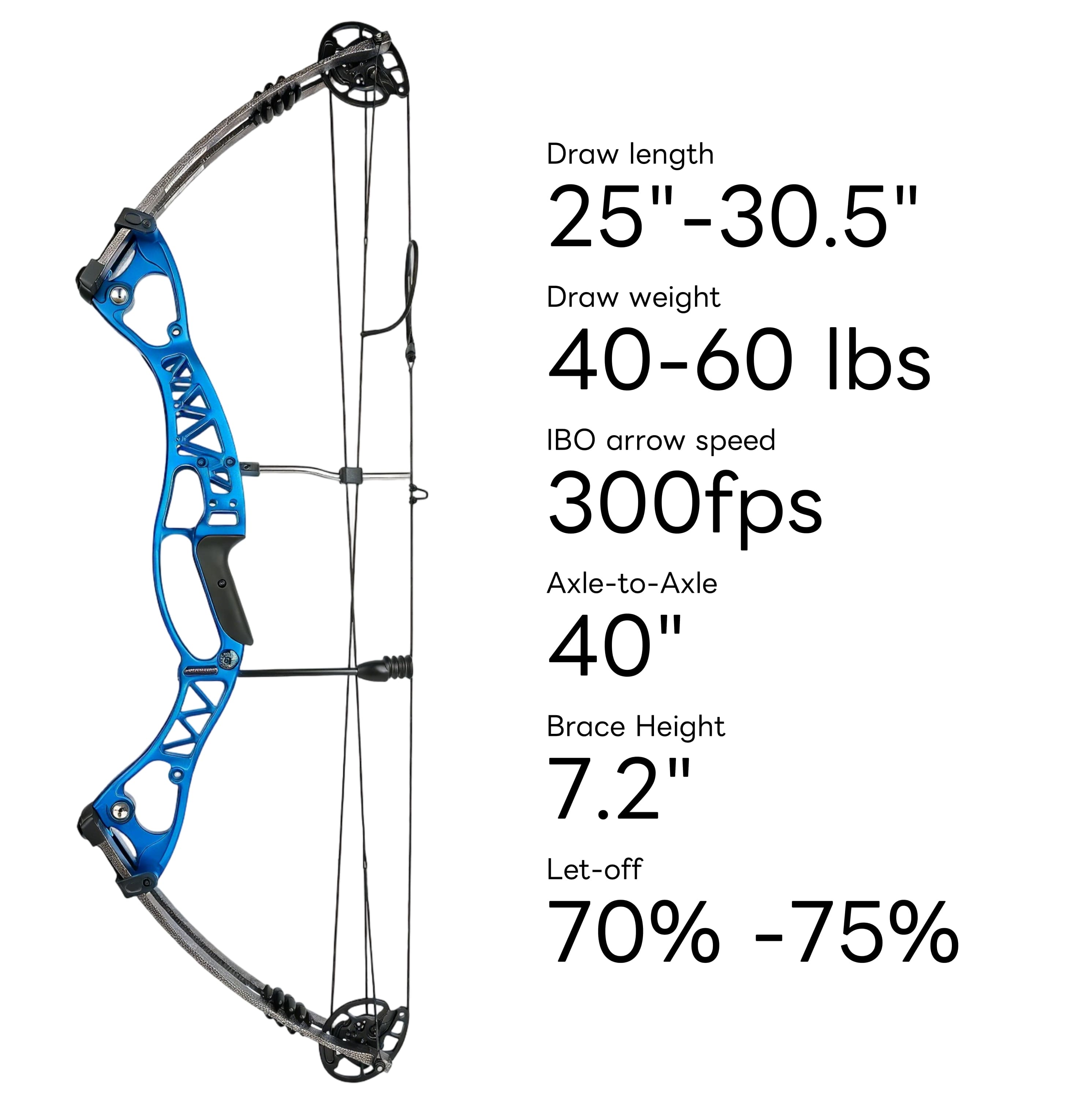 With an adjustable draw weight of 40-60lbs and a 25"-30.5" draw length, this bow is suitable for archers of all sizes and skill levels.