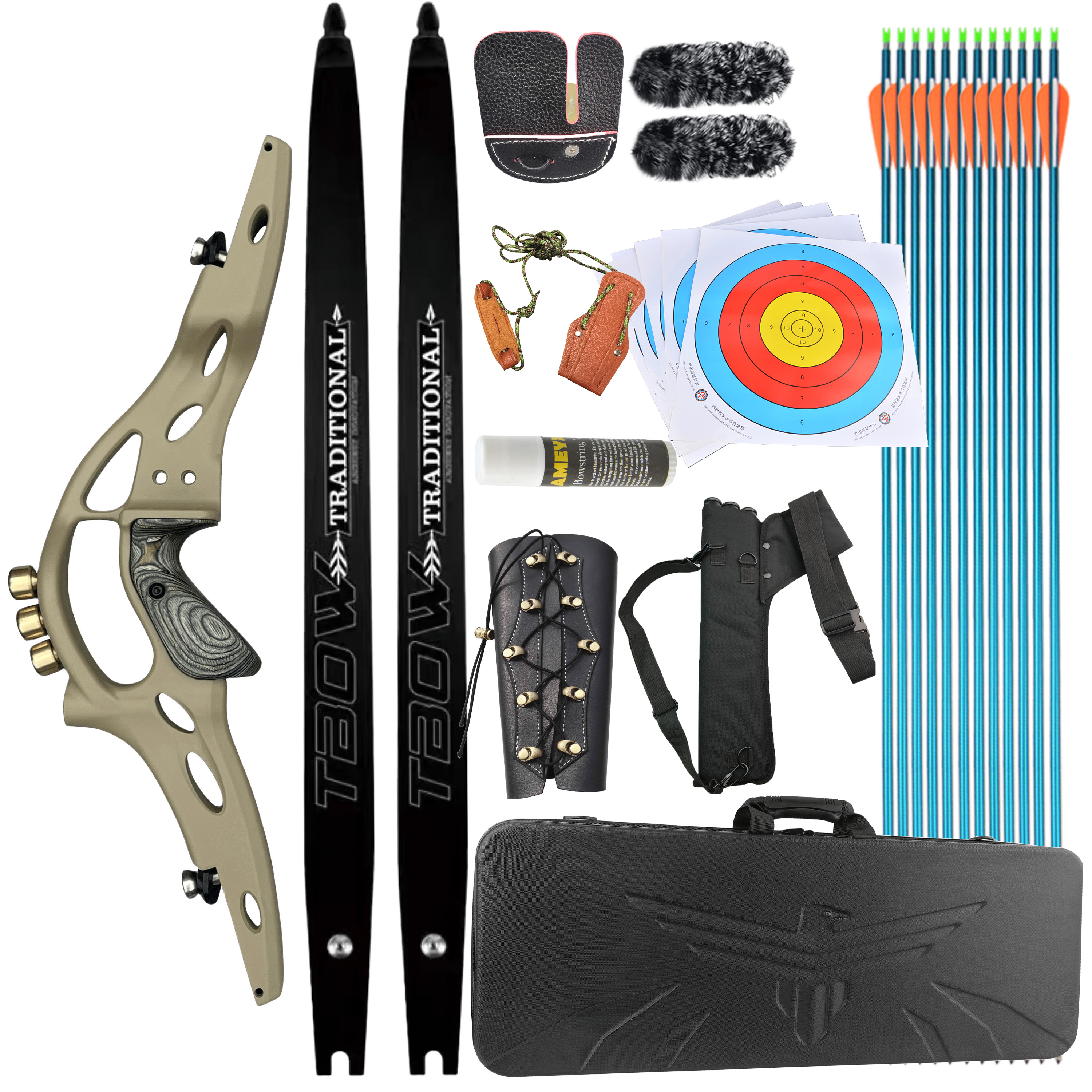 The aluminum alloy die-cast bow handle is equipped with three 540-grain brass weights, which can be flexibly removed according to needs to increase the shooting weight.