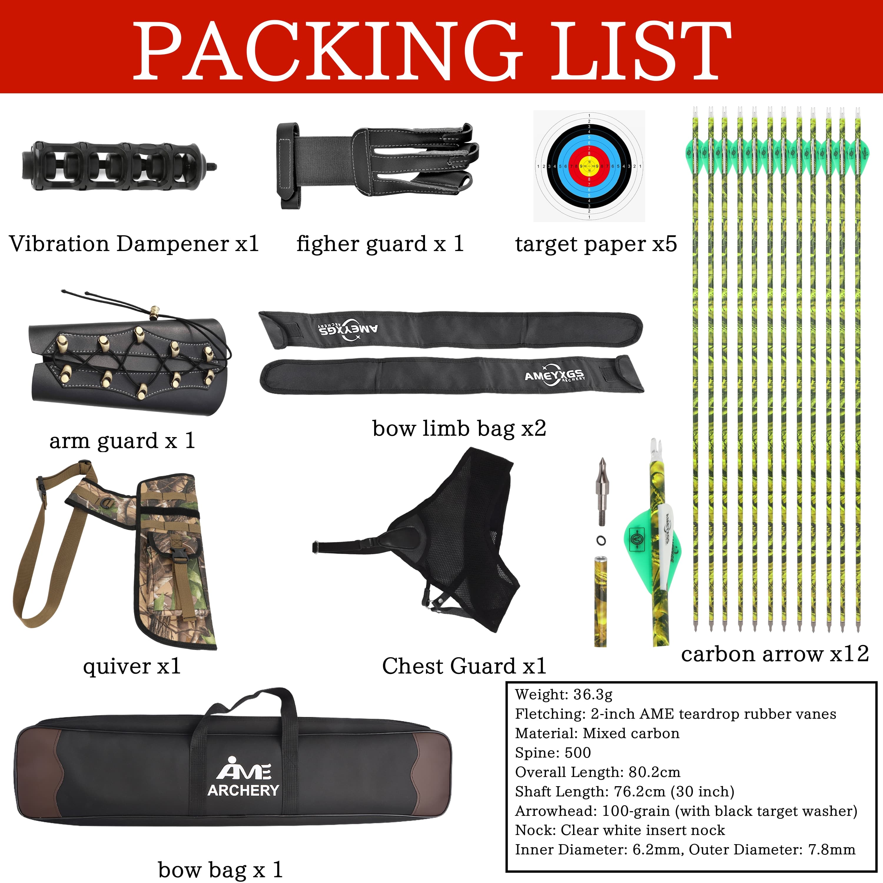 - 12 x Carbon Arrows