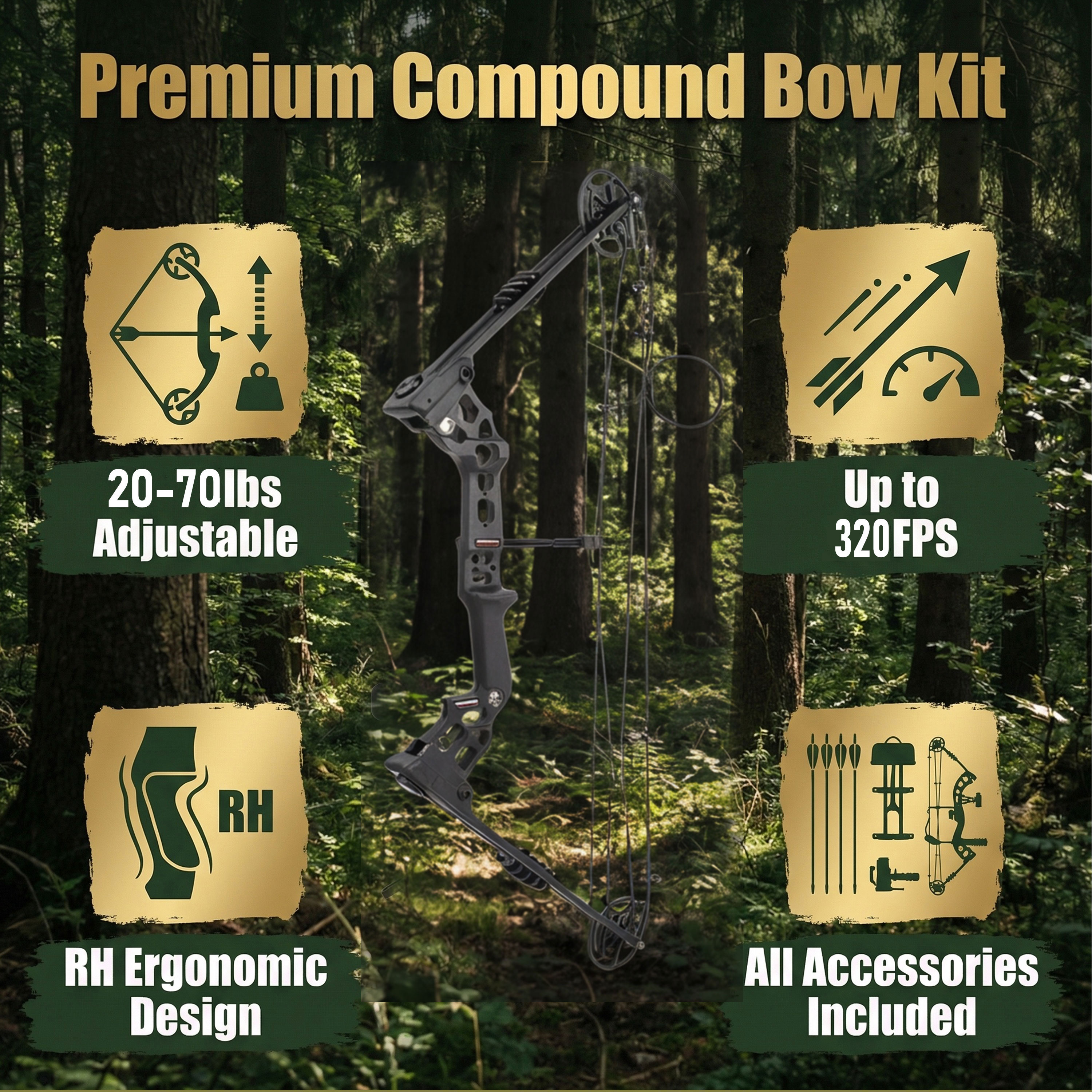 Its adjustable draw length (24–30") and draw weight (20–70 lbs) make it perfect for archers of all experience levels.