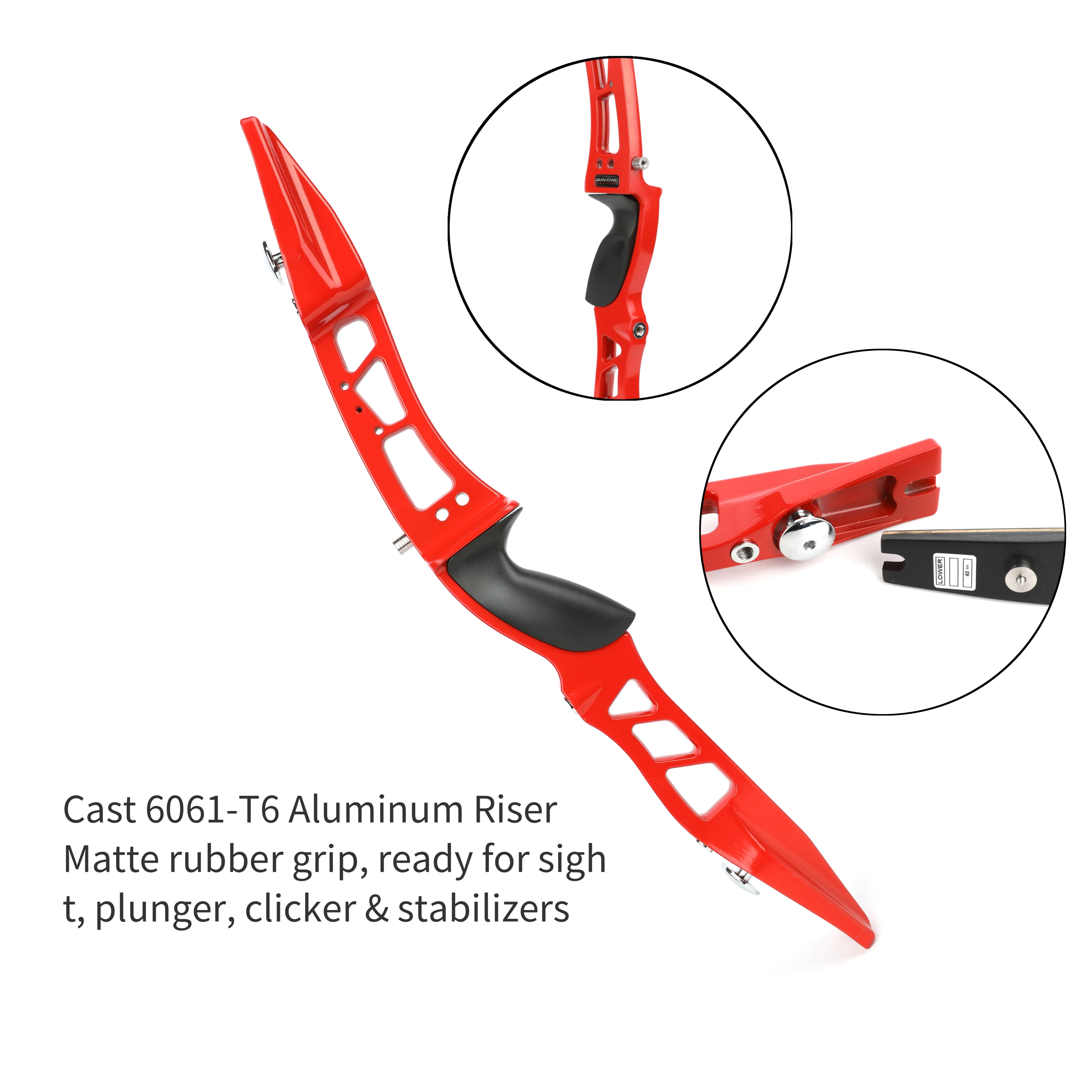 The 6061-T6 aluminum alloy riser is strong, lightweight, and perfectly balanced for stable shooting.