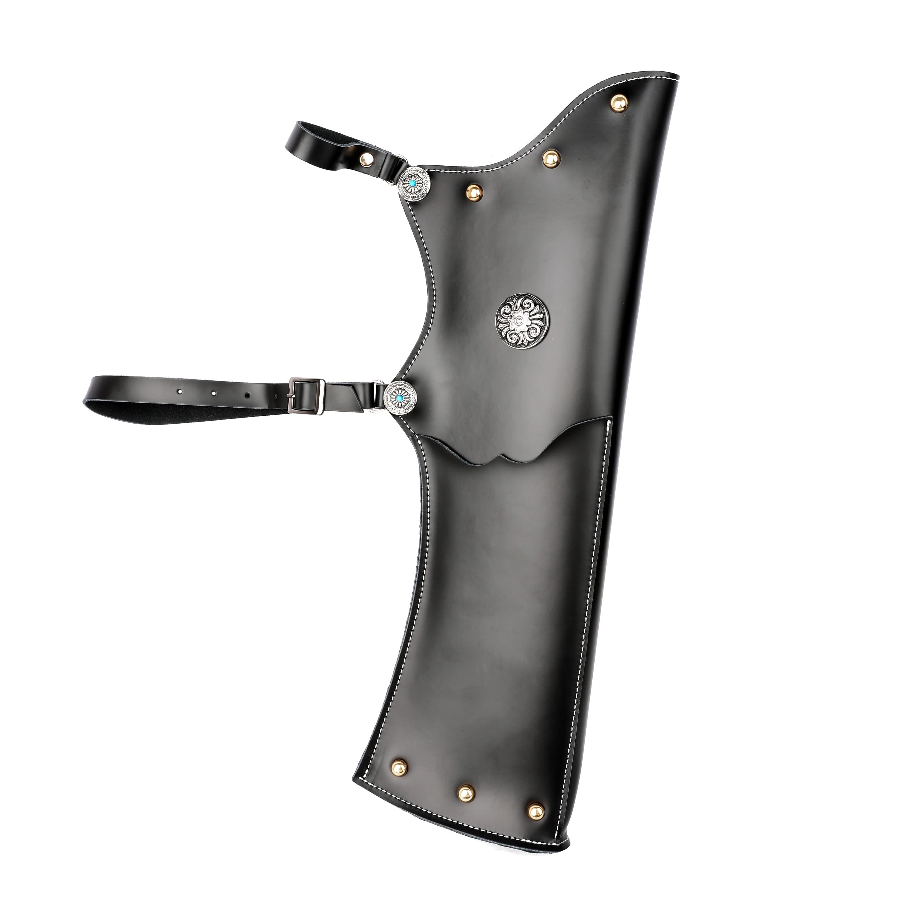 This Ming-style quiver is crafted from durable split cowhide leather, combining traditional aesthetics with practical functionality.