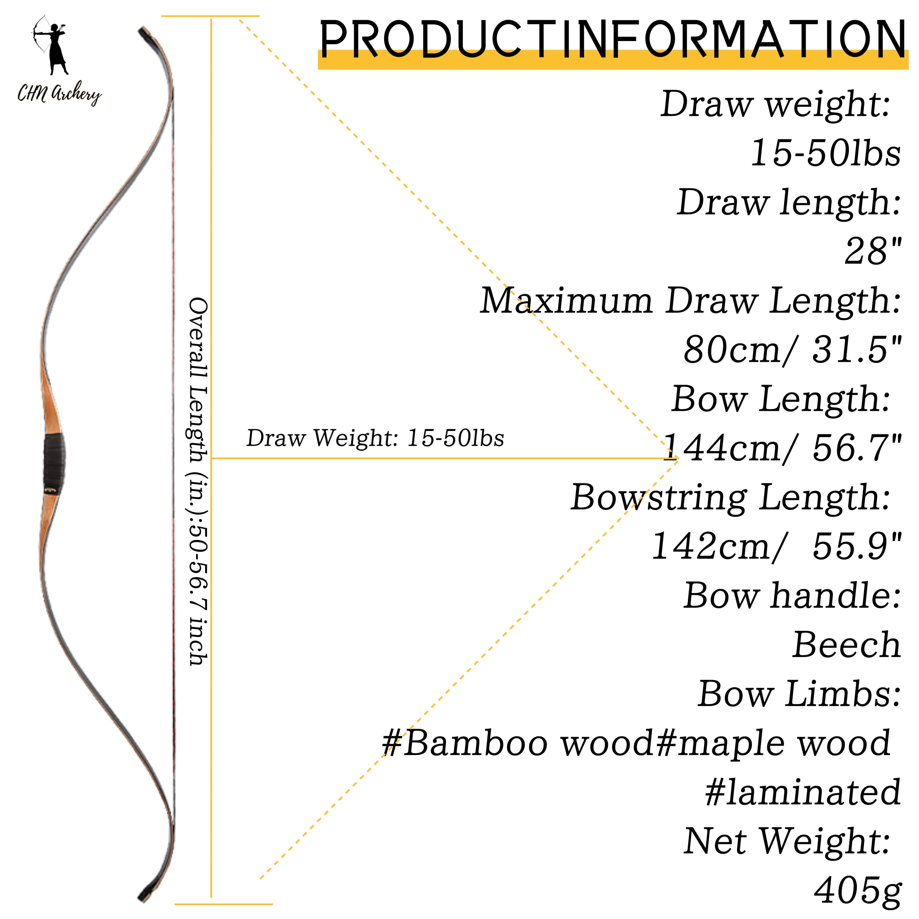 Measuring 144 cm (56.7 inches) in total length with a 142 cm (55.9‑inch) string, the longer bow configuration enhances balance and reduces hand shock, delivering a controlled and steady shooting experience, particularly at common draw lengths around 28 inches.