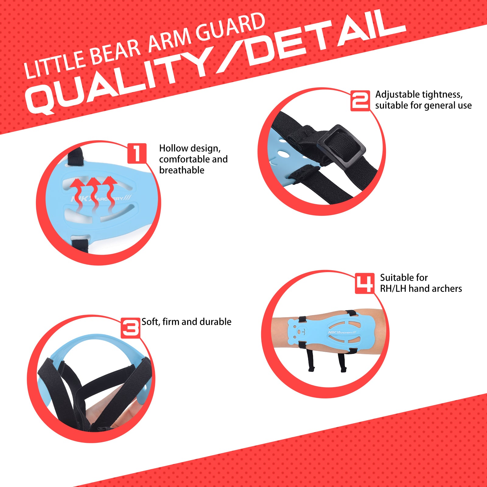 Crafted from a high-strength PP+TPR hybrid material, this arm guard is exceptionally lightweight at just 19.2g. It offers reliable defense against bowstring impact.