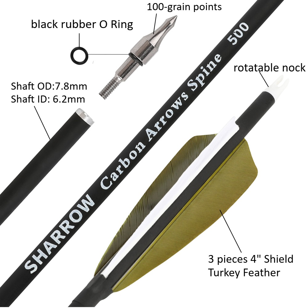 - Package Includes: 12 x SHARROW Carbon Arrows