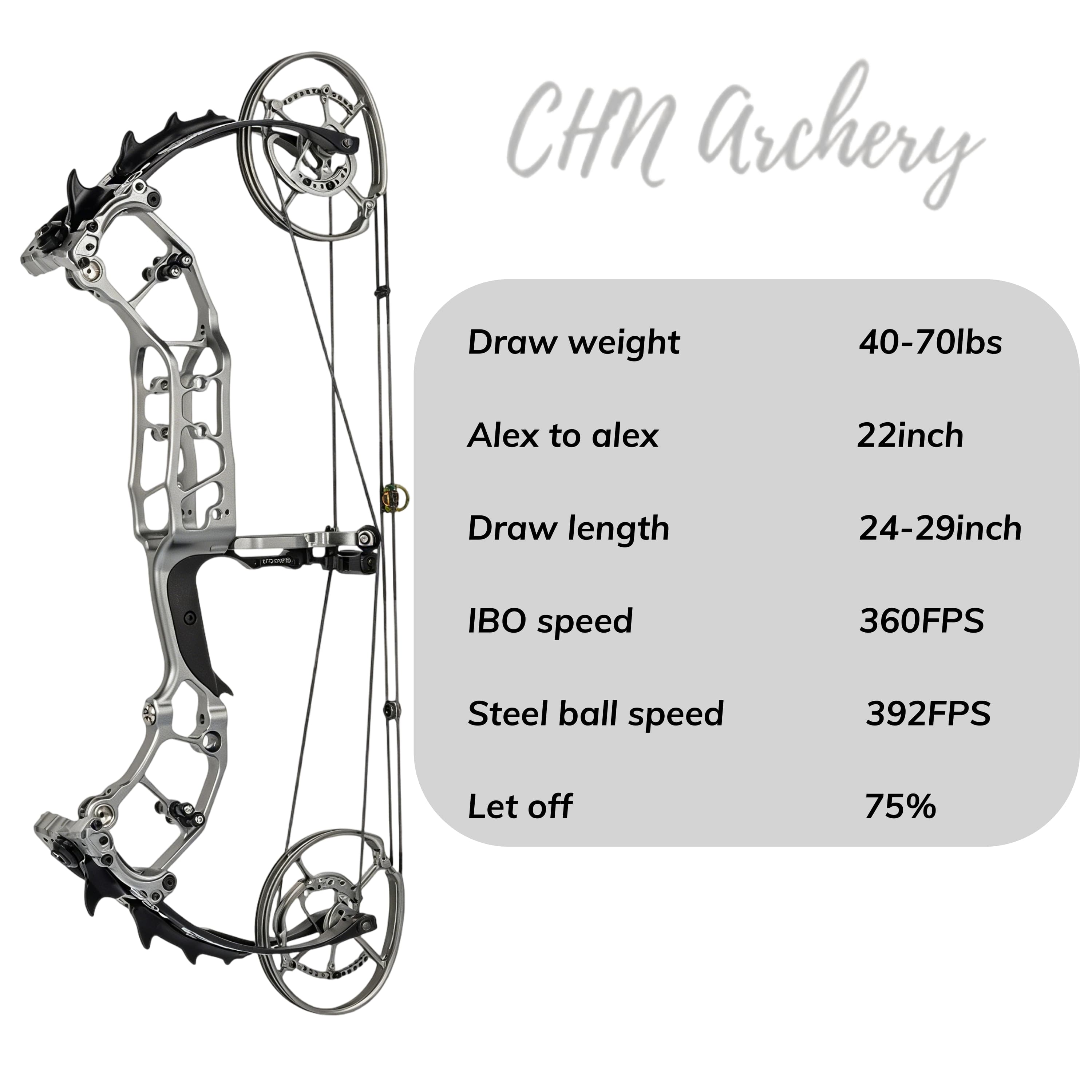 Built with robust composite laminated bow limbs and a high 75% let-off, it delivers a smooth draw cycle, reduced holding weight at full draw, and reliable durability to withstand rigorous use in various conditions.