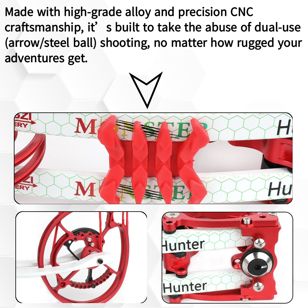It is a steel ball compound bow that can be used for outdoor hunting, shooting.It is small in size and short-axis design, and can even be used in the car, which is very suitable for outdoor vehicle hunting.
