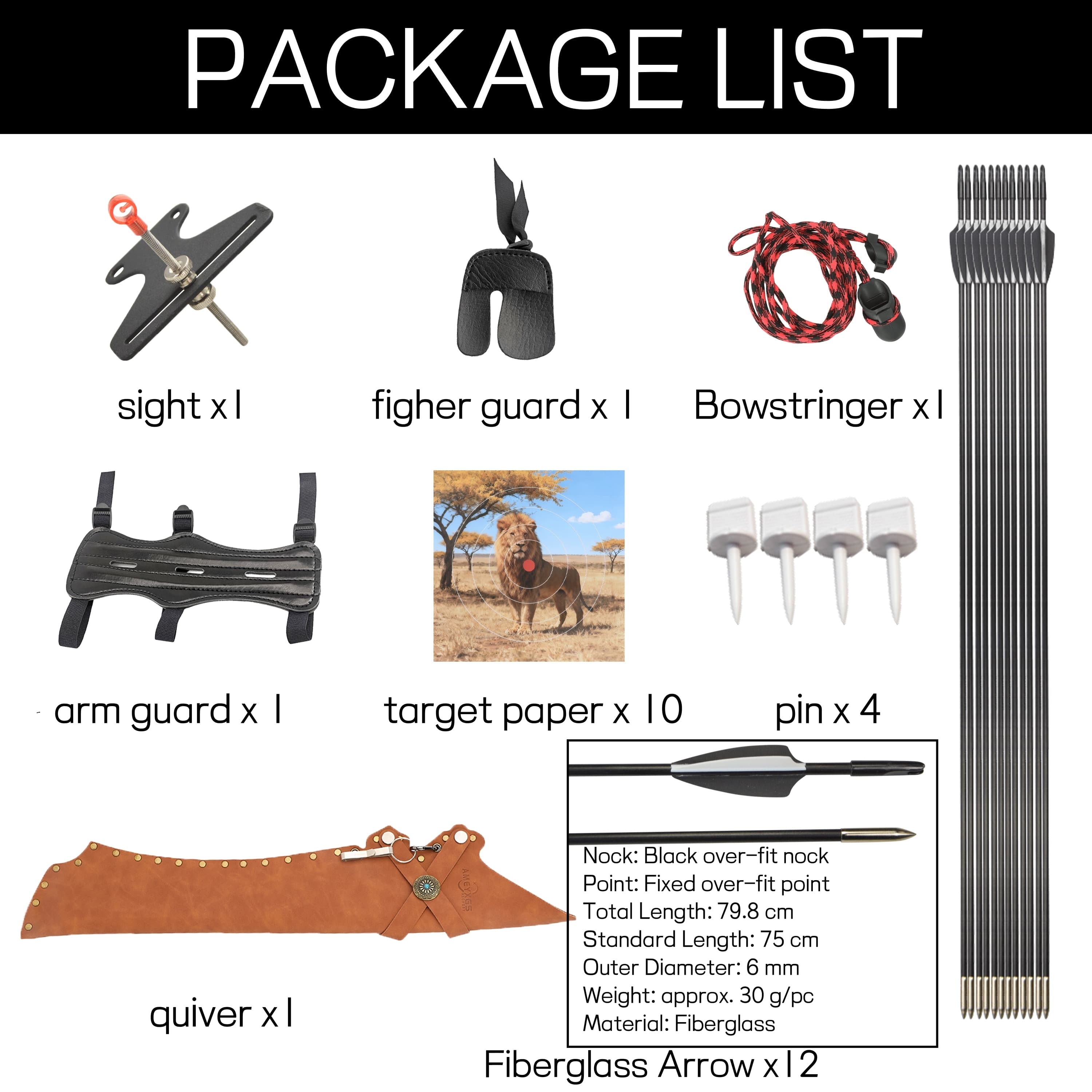 Comes with all essential accessories including arrows, sight, arm guard, and targets for an immediate start.