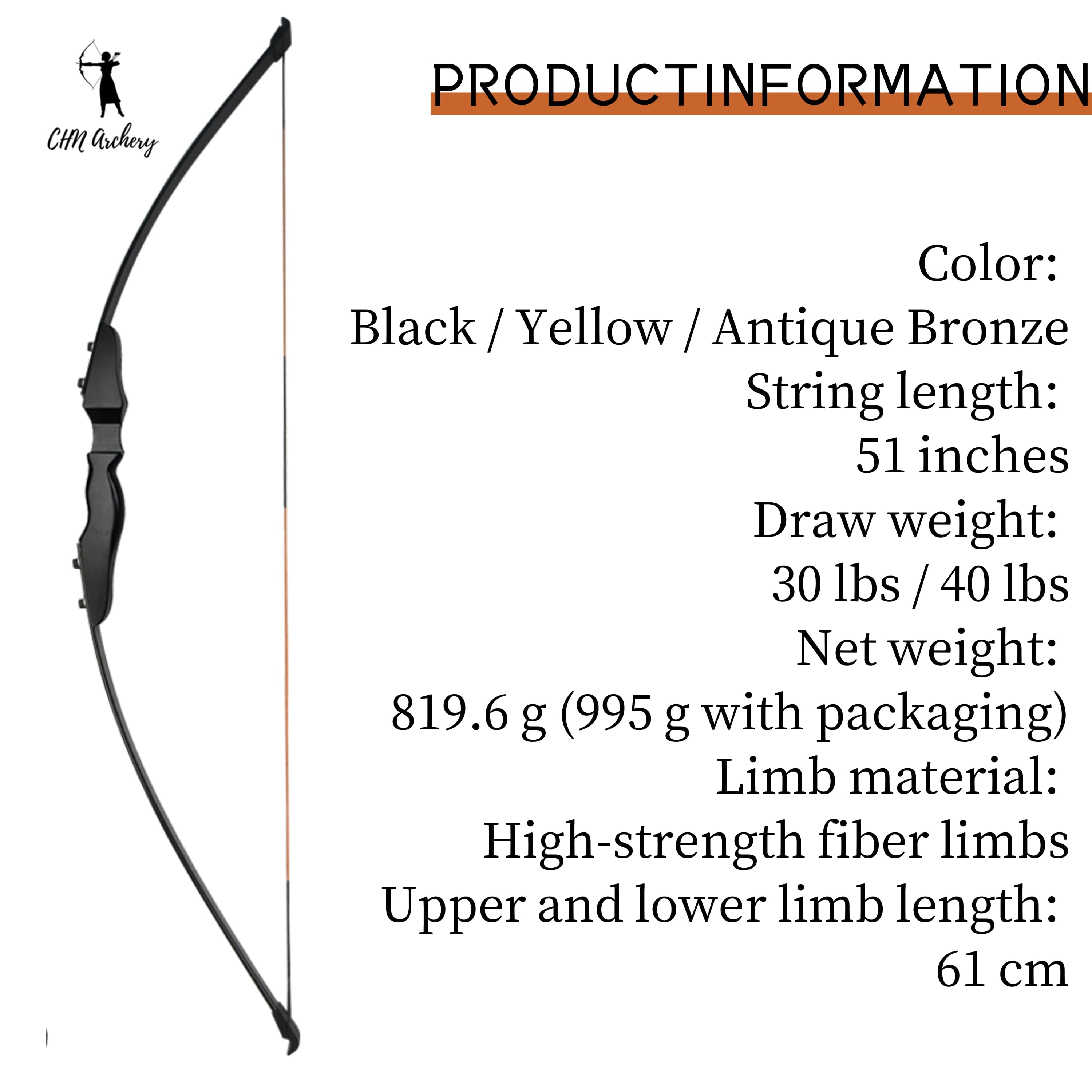 Combines a classic wooden riser with high-strength fiberglass limbs for good elasticity, efficiency, and lasting performance.