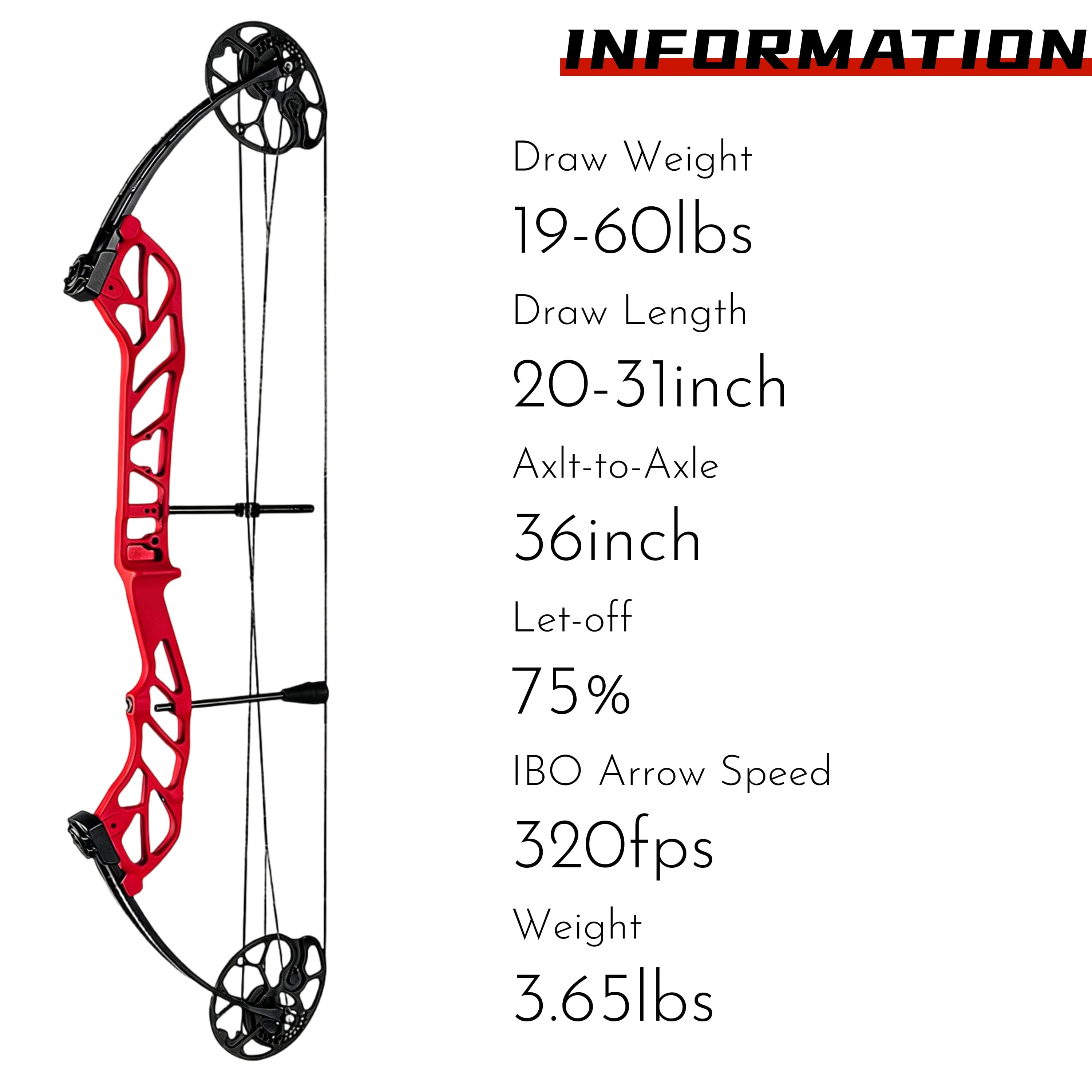 a versatile hunting bow with 19-60 lbs draw weight & 20-31" draw length adjustment. Hits 320 FPS IBO speed. Perfect for beginners to advanced hunters.