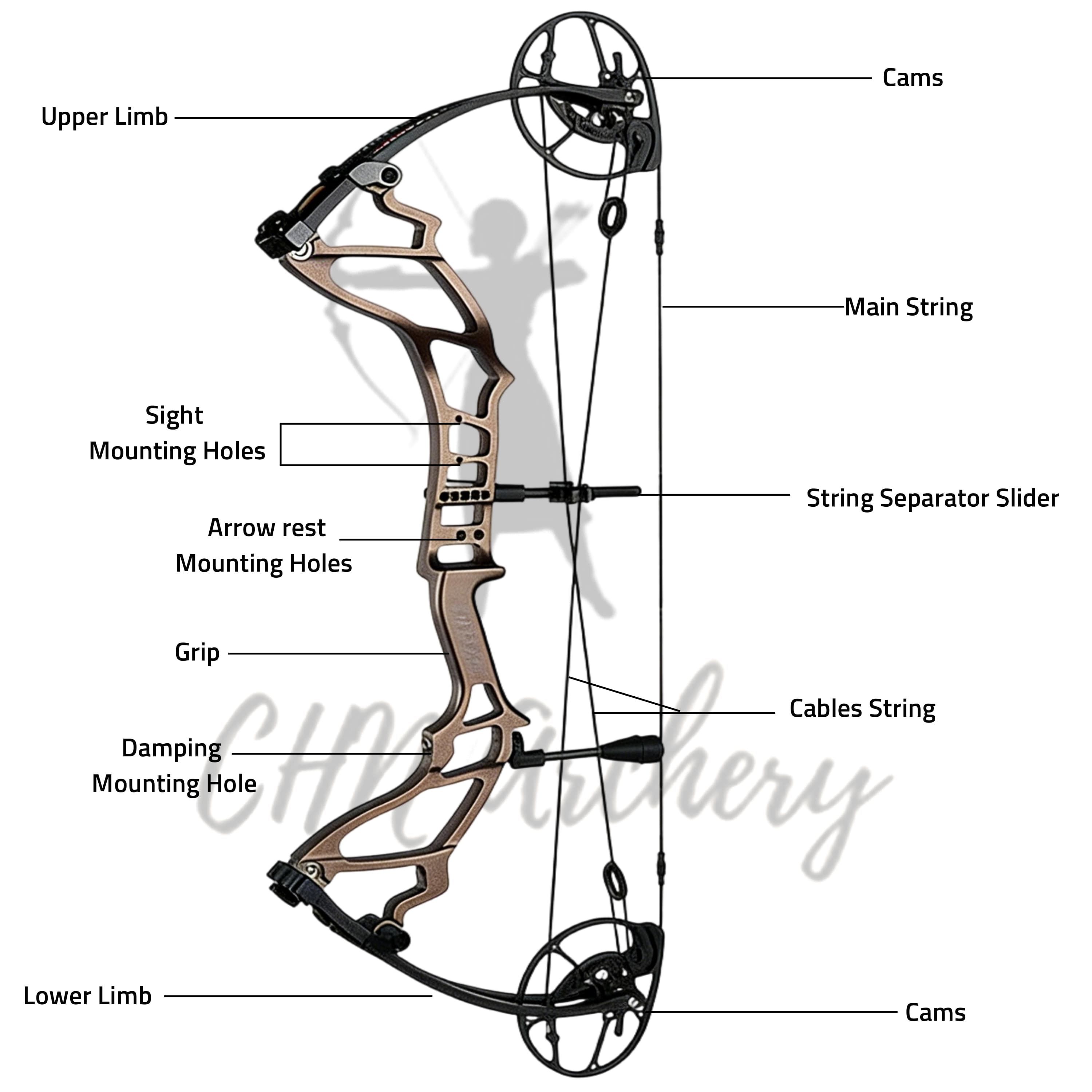 - CNC machining, one-piece molding of the bow handle, lighter weight and stronger rigidity, anodized surface, available in multiple colors.