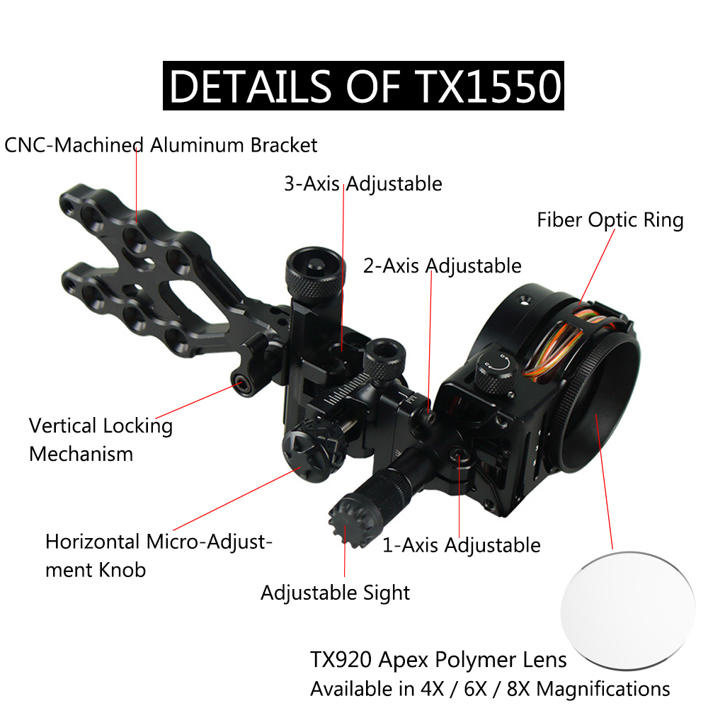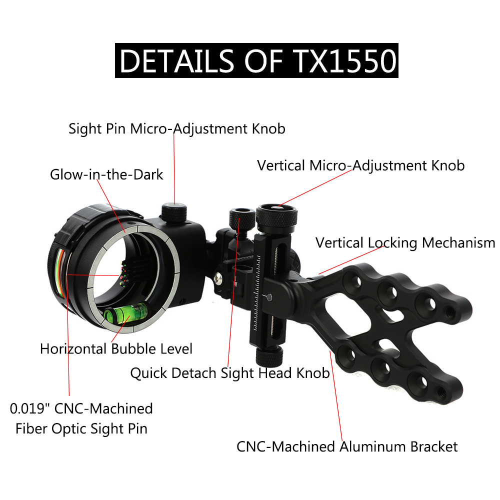 The TP1550 5-Pin Fiber Optic Sight is crafted from high-strength aluminum alloy, delivering a rugged structure while significantly reducing overall weight—perfect for extended outdoor hunting and range training sessions.