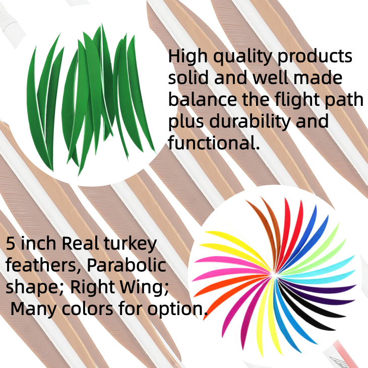 5 inch natural turkey feather right wing, light weight, good performance and durable.